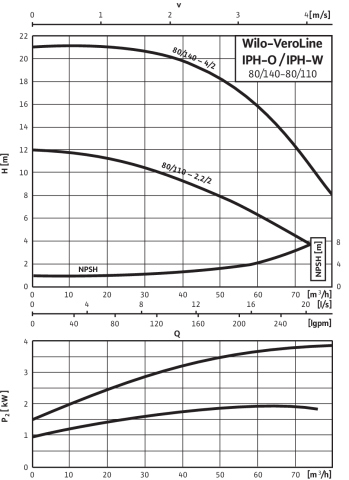Pompa obiegowa WILO VeroLine-IPH-W 80/140-4/2-IE3 typu in-line z silnikiem znormalizowanym 50 Hz, moc silnika 4kW 7.1 A 2840 obr/min, wlot Kołnierz DN 80