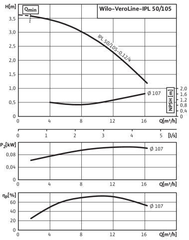Pompa obiegowa WILO VeroLine-IPL 50/105-0,12/4 typu in-line z silnikiem znormalizowanym 50 Hz, moc silnika 0.12kW 0.34 A 1500 obr/min, wlot Kołnierz DN 50