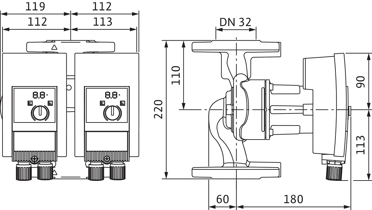 *Przyłącze gwintowane po stronie ssawnej: DN 32