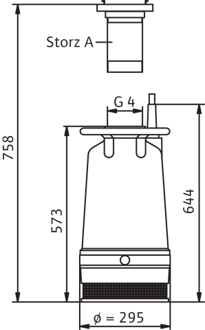 Całkowicie zanurzona pompa zatapialna do wody zanieczyszczonej, pionowe ustawienie mokre, do tłoczenia wody zanieczyszczonej i zawierającej piasek Korpus hydrauliczny i wirnik z żeliwa szarego, korpus silnika z aluminium. Przyłącze tłoczne z centrycznym i pionowym odpływem ciśnieniowym i złączem typu Storz. Silnik chłodzony powierzchniowo w wersji na prąd trójfazowy z chłodzeniem płaszczowym i komorą uszczelnienia. Rozłączny kabel zasilający z wtyczką wg standardu CEE z funkcją zamiany faz. Uszczelnienie zapewniają dwa niezależne od kierunku obrotów uszczelnienia mechaniczne. Agregat można stosować w podsysającym trybie pracy bez ograniczeń.