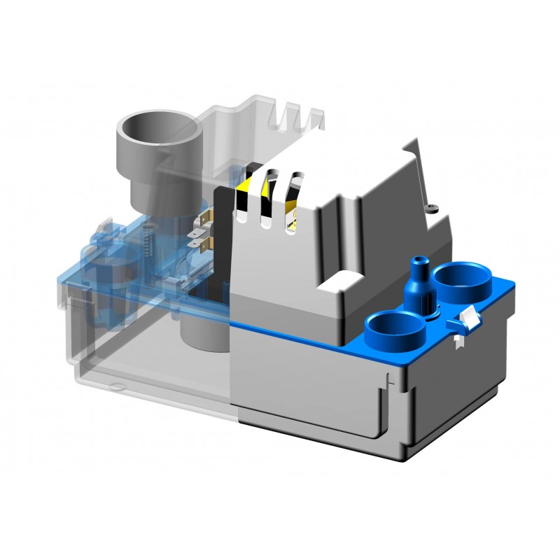 Można ją zainstalować na ścianie lub postawić na podłodze. Mniejszy gabaryt w stosunku do Sanicondens Plus, ale też mniejsze parametry wypompowywania.