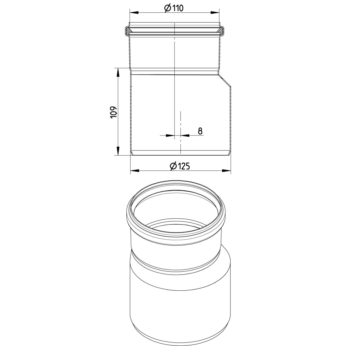 Powiększenie zmiana średnic DN =110 kielichx125 mm bosy, stal kwasoodporna