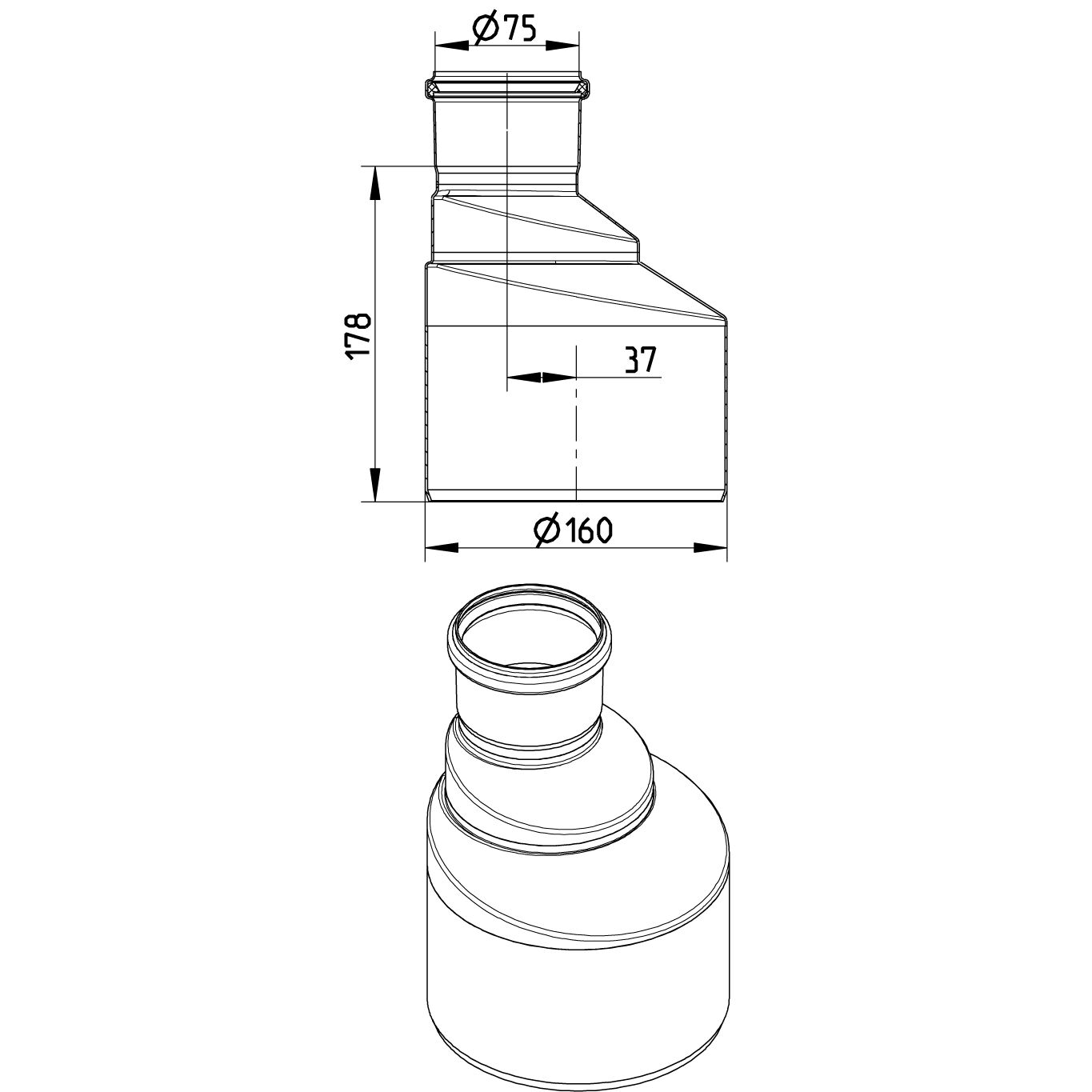 Powiększenie zmiana średnic DN =75 kielichx160 mm bosy, stal kwasoodporna