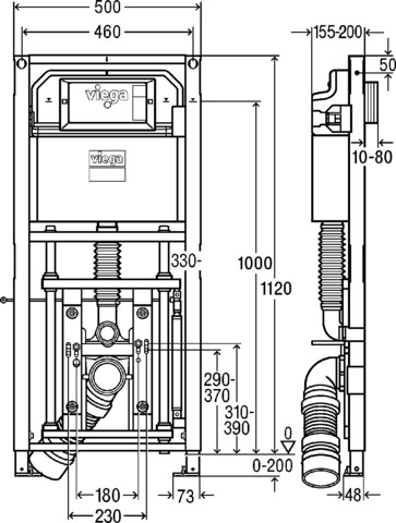 Prevista Dry-stelaż WC, z indywidualną regulacją wysokości zawieszenia ceramiki sanitarnej przez użytkownika za pomocą przycisku, 1120 mm, tylko w połączeniu z: płytka maskująca do WC Prevista nr wzoru 8570.39, do montażu podtynkowego zamawiać osobno: Prevista Dry-zestaw mocujący nr wzoru 8570.36, stal, PE, kompatybilne ze wszystkimi przyciskami uruchamiającymi do WC Prevista, kompatybilne z Prevista Dry Plus, z indywidualną regulacją wysokości zawieszenia ceramiki sanitarnej przez użytkownika za pomocą przycisku, 2-objętościowy układ spłukujący, dla niepełnosprawnych, nie występuje: płytka maskująca. Wyposażenie: Rama malowana proszkowo (40×40), spłuczka podtynkowa 3H, dławik przepływu wody, komplet przyłączeniowy do WC, materiał do mocowania, hamulec do ustawienia wysokości zabudowy, przyłącze wody R½ od tyłu i od góry, łuk przyłączeniowy do WC DN90 (elastyczny) z PE, złączka przejściowa mimośrodowa DN90/100 z PE. Dane techniczne: ustawienie fabryczne spłukiwanie oszczędne ok. 3 l, zakres ustawienia objętości oszczędnego spłukiwania ok. 2–4 l, ustawienie fabryczne spłukiwanie pełne ok. 6 l, zakres ustawienia objętości pełnego spłukiwania ok. 3,5–7,5 l, maks. obciążenie 400 kg, maks. długość miski 700 mm. Wskazówka: Przyciski uruchamiające i wyposażenie: grupa produktów przyciski uruchamiające do WC i pisuarów Prevista!, Przez zmianę prętów gwintowanych można dopasować zakres ustawień 320–400 mm!, nr wzoru 8521.32, nr kat. 772 024, H zab.: 1120 B: 500 Indywidualny zakres regulacji: 340-420 mm,