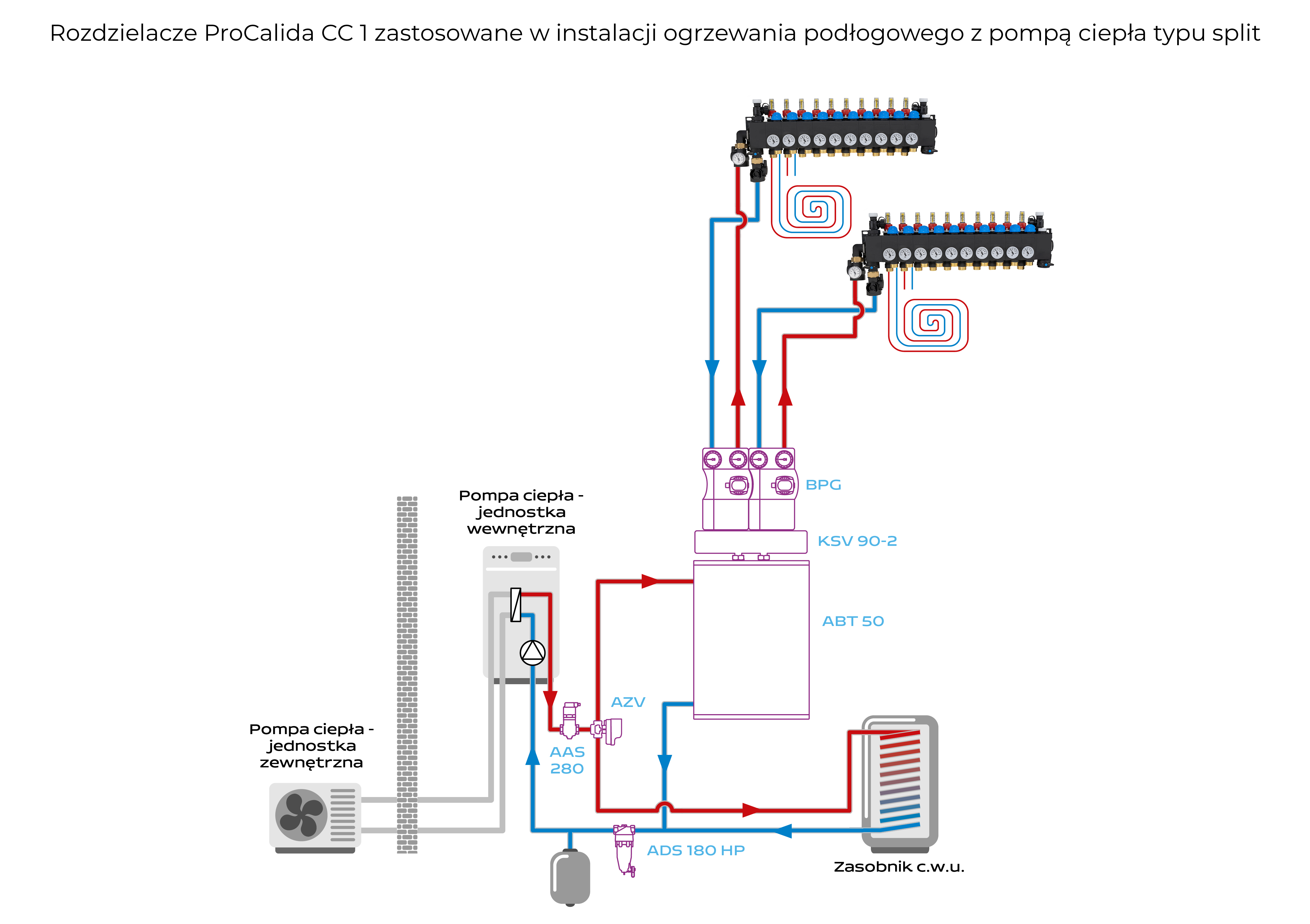 Rozprowadza ciepło / chłód ze źródła na poszczególne pętle instalacji płaszczyznowej.