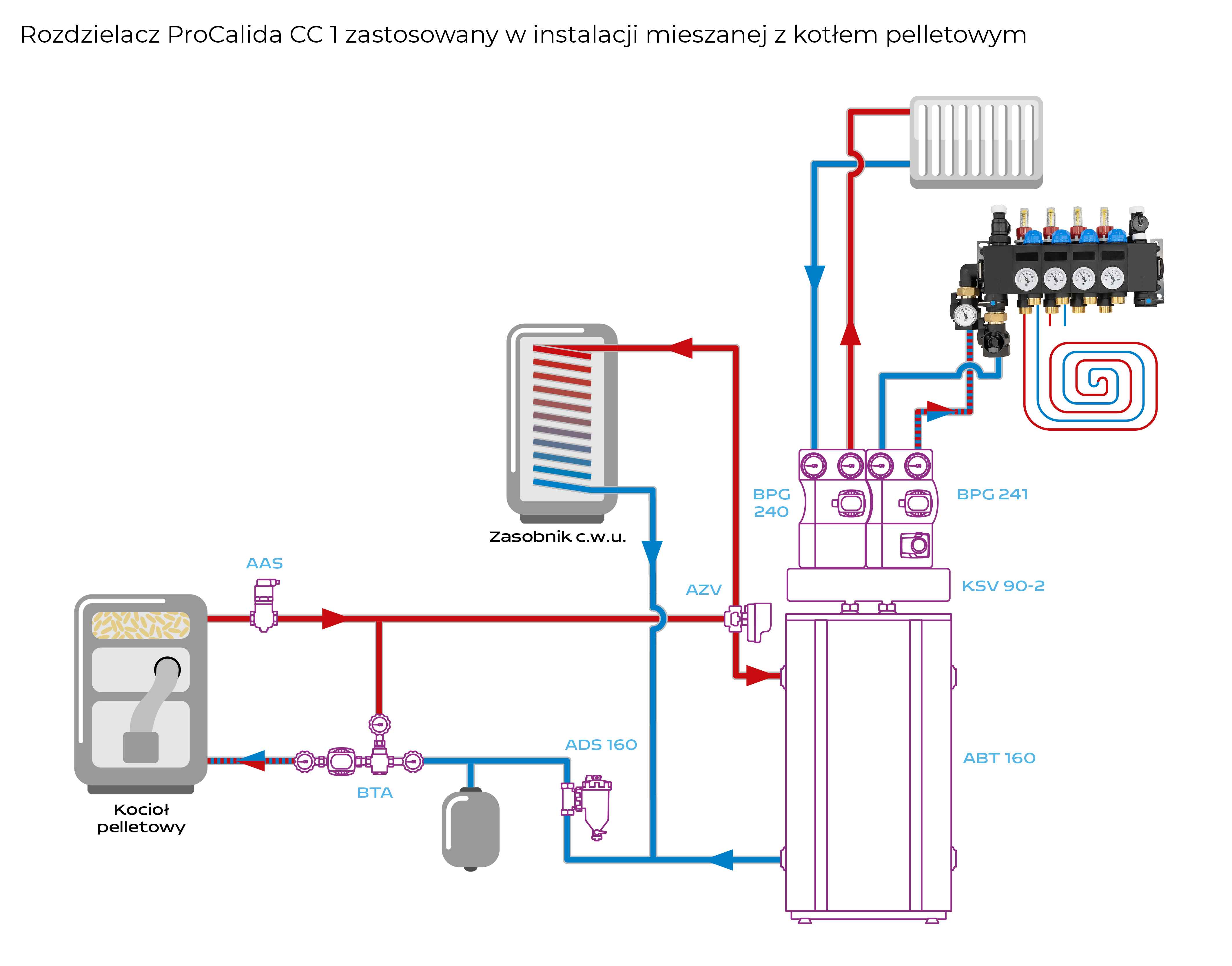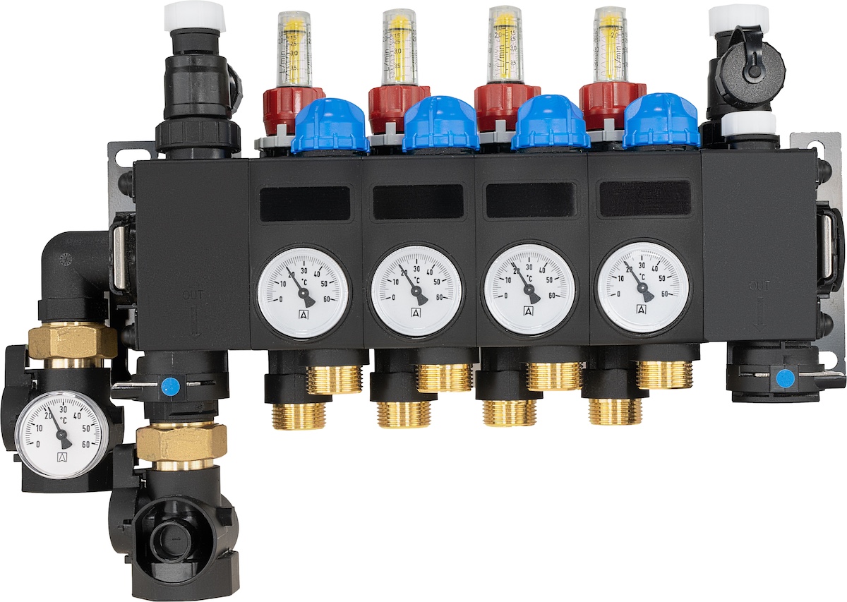Rozprowadza ciepło / chłód ze źródła na poszczególne pętle instalacji płaszczyznowej.