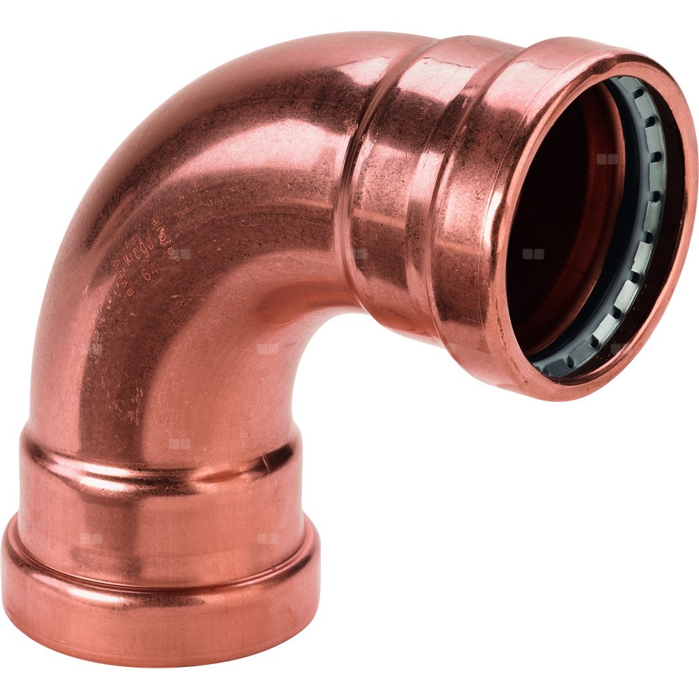 Profipress XL-łuk 90°, z SC-Contur, miedź, przyłącza zaprasowywane. Wyposażenie: Elementy uszczelniające EPDM, pierścienie nacinające, pierścienie oddzielające, nr wzoru 2416XL, nr kat. 476 861, d: 108,0