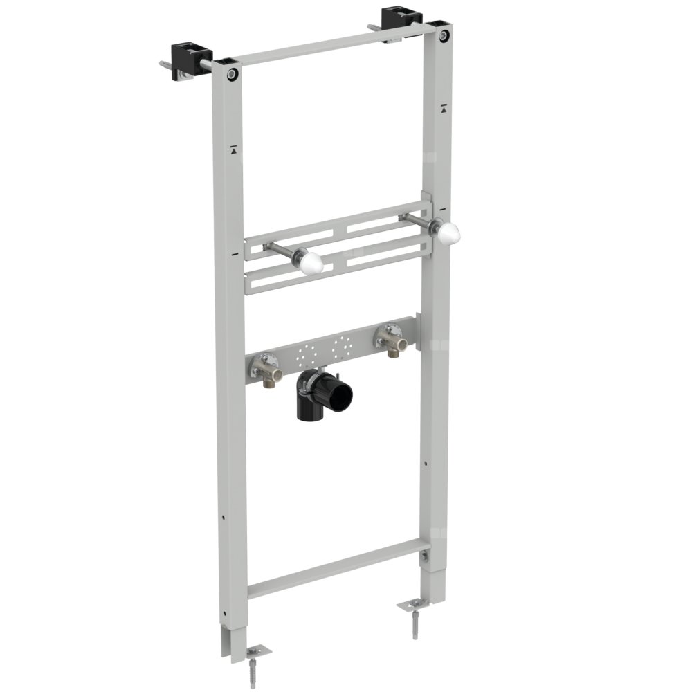 Do zastosowania z baterią stojącą. Instalacja: zabudowa podtynkowa z mocowaniem ściennym. Odporność na korozję i obciążenia do 150 kg. System montażu zapewniający szybką i łatwą instalację. Wsporniki z blokadą ułatwiającą montaż i regulacją wysokości w zakresie od 0 do 300 mm. Minimalna głębokość montażu 120 mm. Regulacja wysokości i rozstawu mocowania umywalki. Elementy w komplecie: Standardowy zestaw montażowy do umywalki. Kompletny zestaw montażowy, wraz ze wspornikami ściennymi. Kolano rury odpływu. Przyłacza kątowe do baterii G ½ - 2 szt.