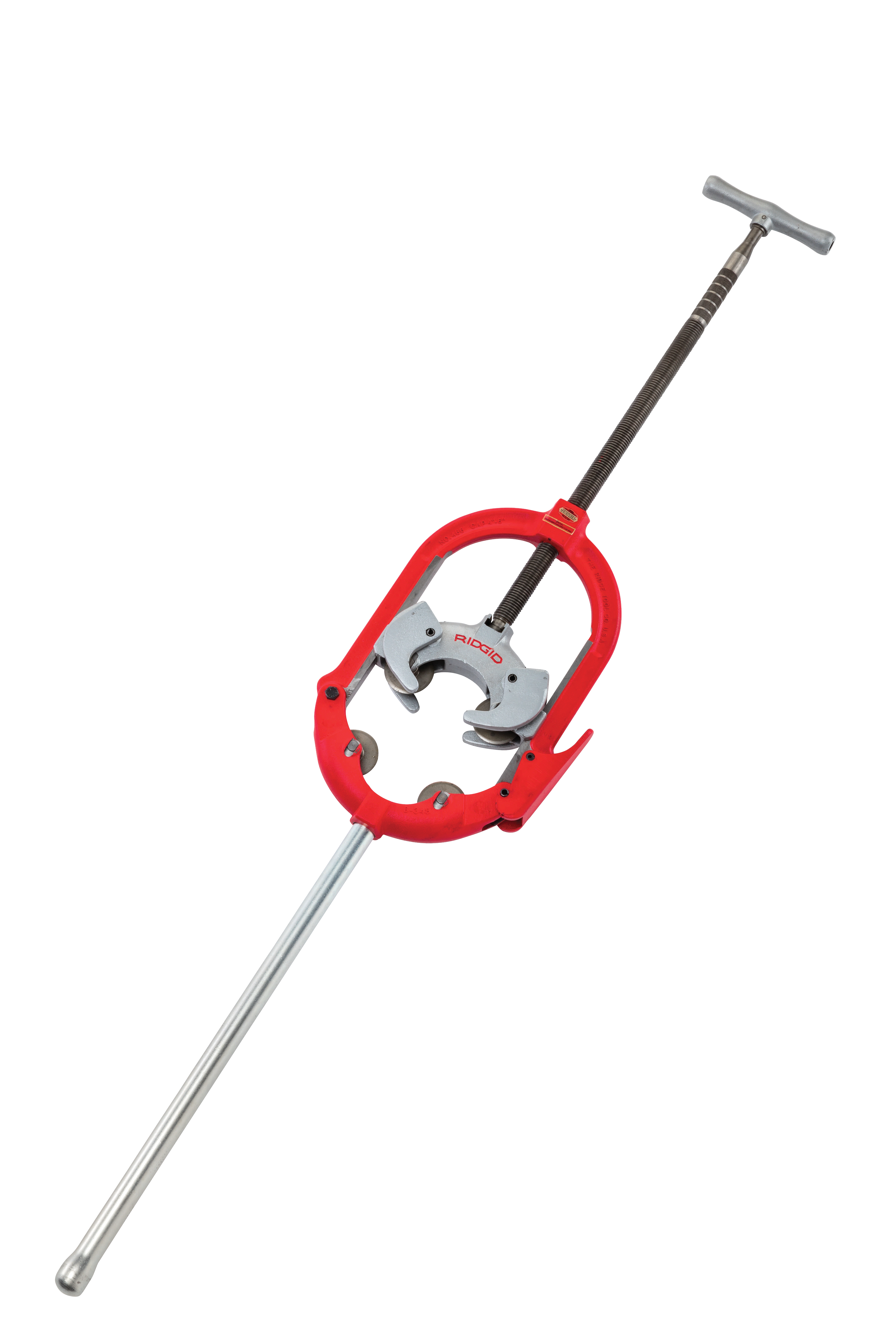 Model działa z minimalnym obrotem obcinaka, co jest niezbędne w zastosowaniach w ograniczonych przestrzeniach. Druga rączka umożliwia nacisk dwuosobowy przy większych rozmiarach rur.