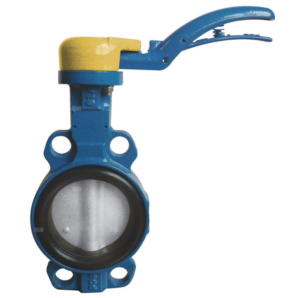 Przepustnica bezkołnierzowa SYLAX GAS z dźwignią ręczną, dysk: AISI316, wykładzina: NBR, korpus: GGG40 epoksyd., Pnom 0,6 MPa, tmax=60 st.C DN 125