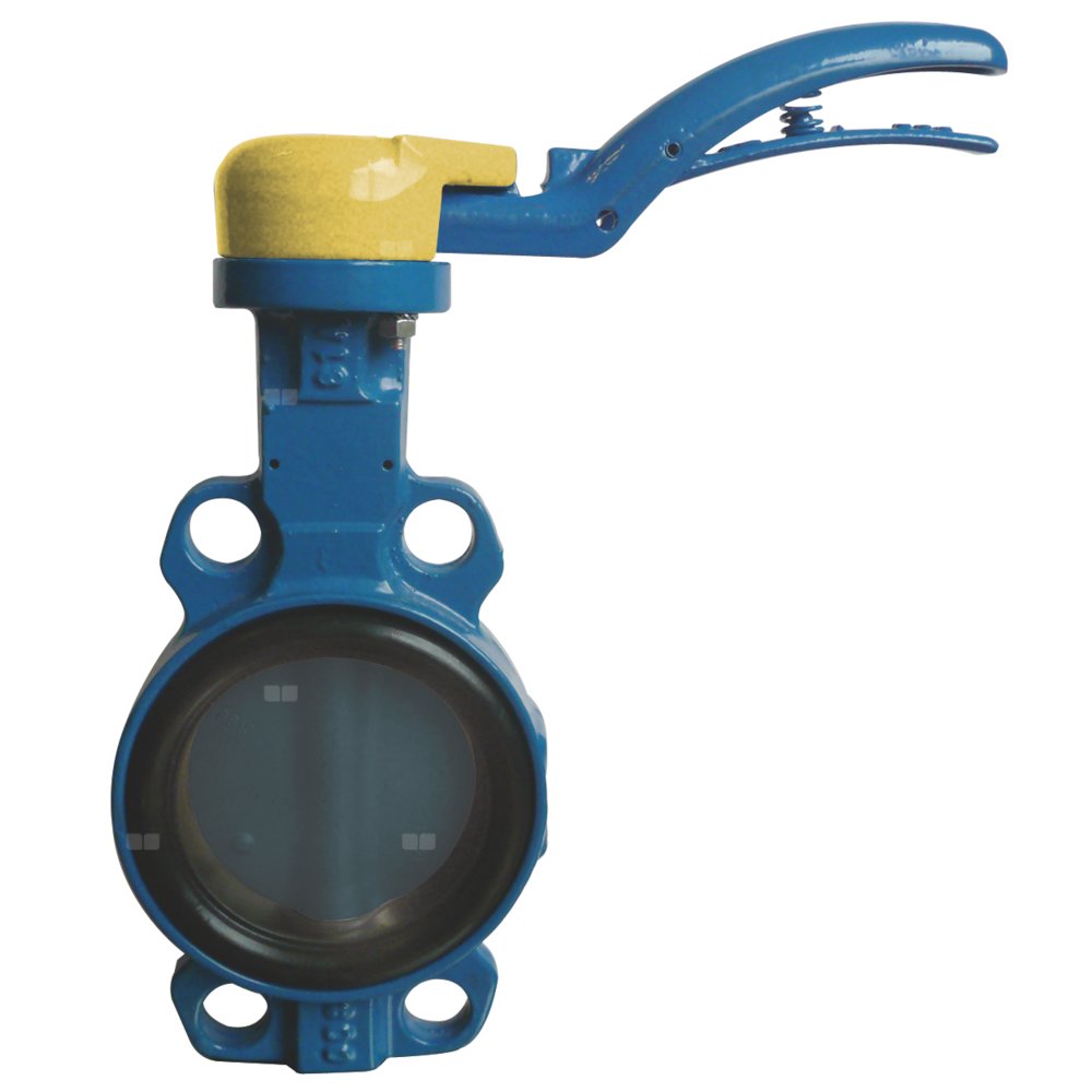 Przepustnica bezkołnierzowa SYLAX GAS z dźwignią ręczną, dysk: GGG40 powl. poliamidem, wykładzina: NBR, korpus: GGG40 epoksyd., Pnom 0,6 MPa, tmax=60 st.C DN150