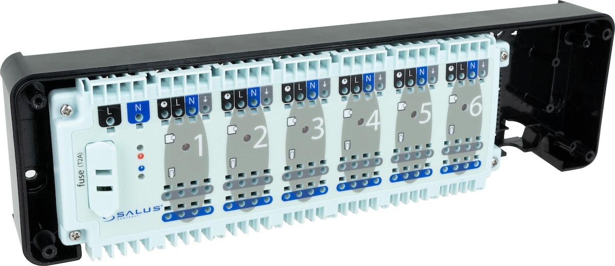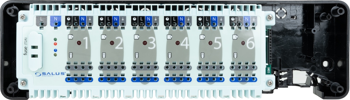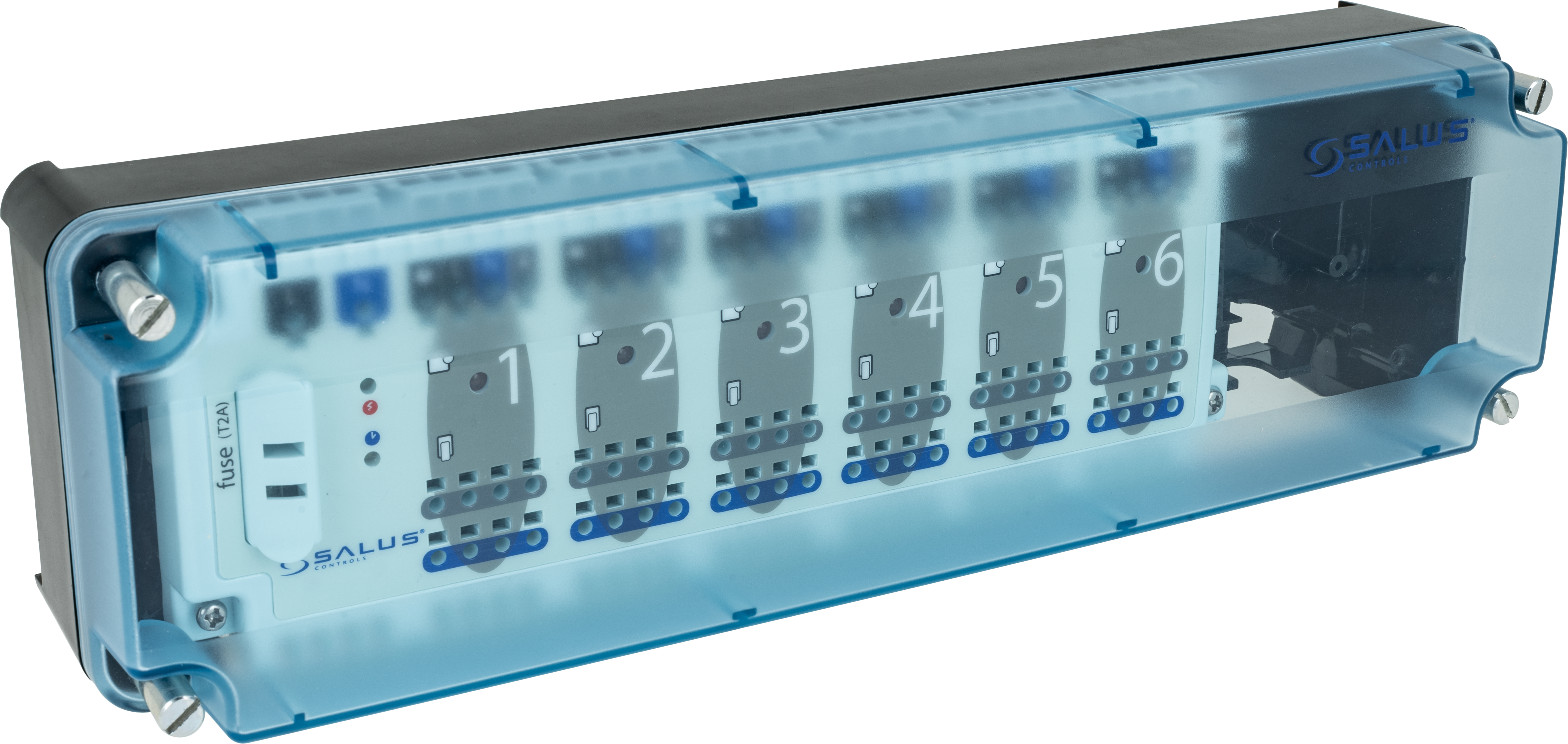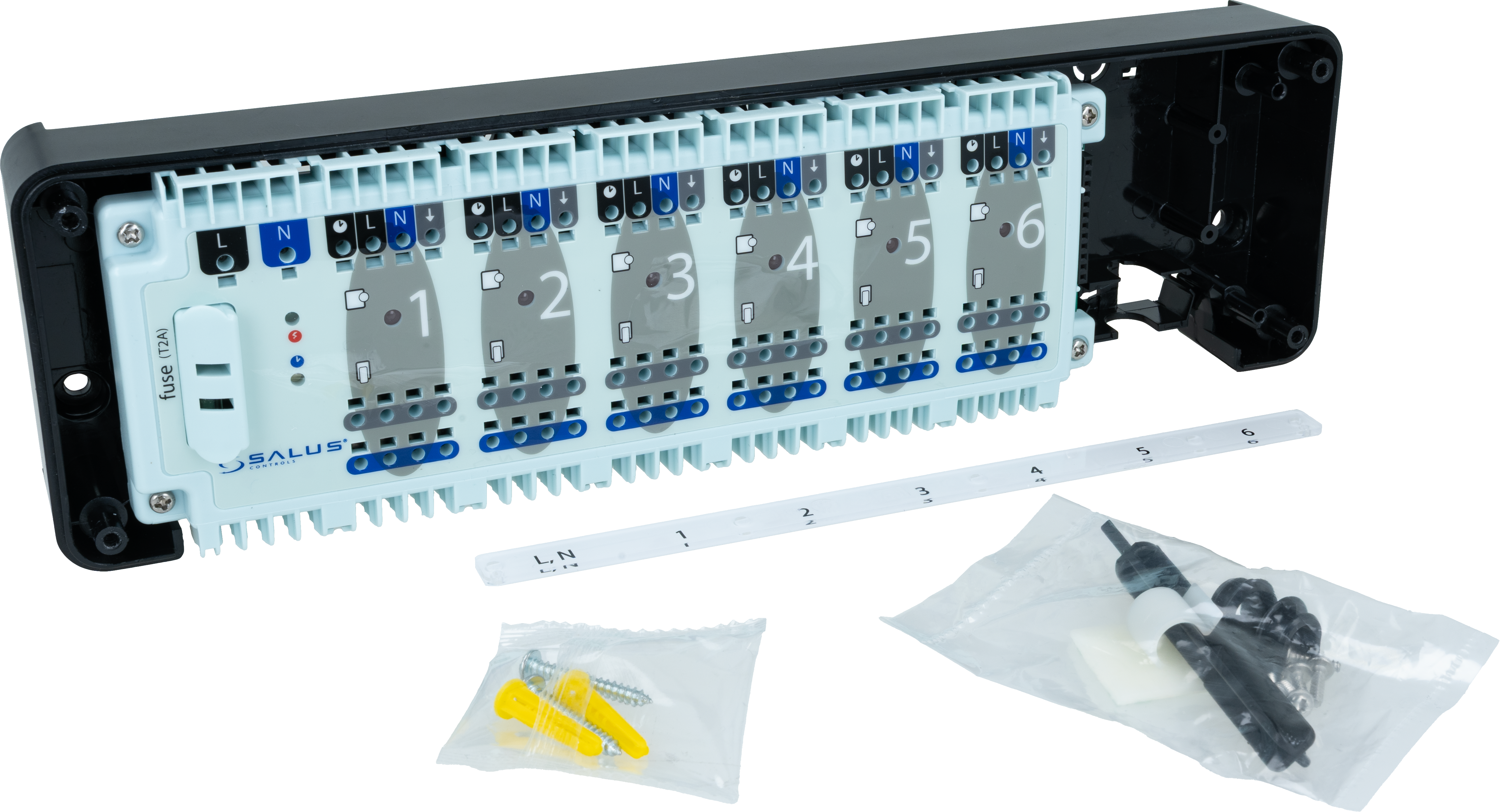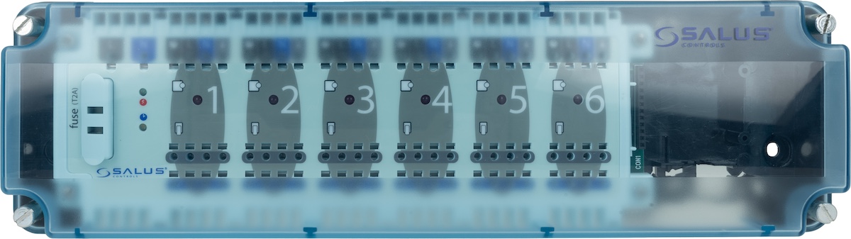 - Umożliwia podłączenie regulatorów do grzania/chłodzenia płaszczyznowego.- Łączy się z regulatorami przewodowo.