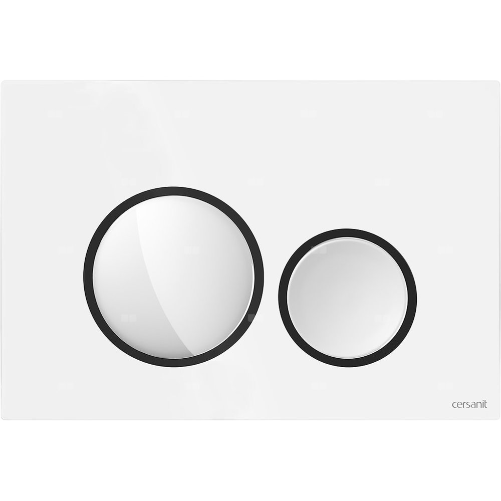 Przycisk spłukujący LUNA by Cersanit RING biały błyszczący z pierścieniami dekoracyjnymi w kolorze czarny mat to inspirująca propozycja dla nowoczesnych, jak i klasycznych wnętrz, kierowana do odbiorców, którzy cenią sobie różnorodność stylistyczną. Forma i kształty wykorzystane w projekcie przycisku doskonale współgrają z ceramiką. Pierścienie dekoracyjne okalające klawisze będą stanowić subtelny detal, który podkreśli charakter wnętrza oraz nada mu unikatowości i elegancji. Przycisk przystosowano do dwudzielnego, oszczędnego systemu spłukiwania. Przycisk pasuje do stelaży podtynkowych AQUA i SYSTEM (K97-524; K97-526; K97-525). Współpracuje z FRESH SYSTEM, który jest idealnym rozwiązaniem w powiązaniu z bezkołnierzową technologią CleanOn, gdzie brak kołnierza nie wyklucza stosowania środków odświeżających. To kompletne, nowoczesne rozwiązanie gwarantuje kompleksową higienę w toalecie. Dopracowana konstrukcja przycisku zapewnia łatwy i szybki montaż.