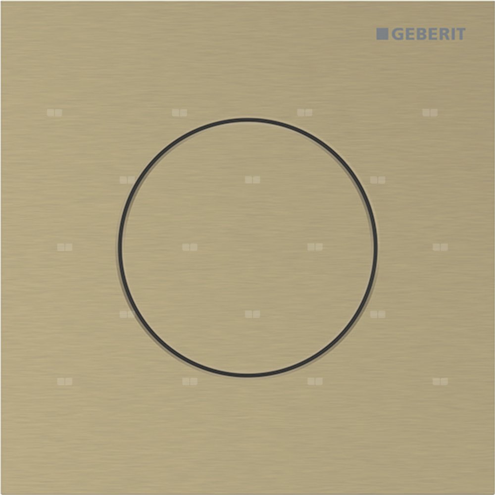 Przycisk uruchamiający Geberit typ 40 do systemu spłukiwania pisuarów z pneumatycznym uruchamianiem spłukiwania, okrągły: W kolorze mosiądzu / Szczotkowany, powlekany easy-to-clean