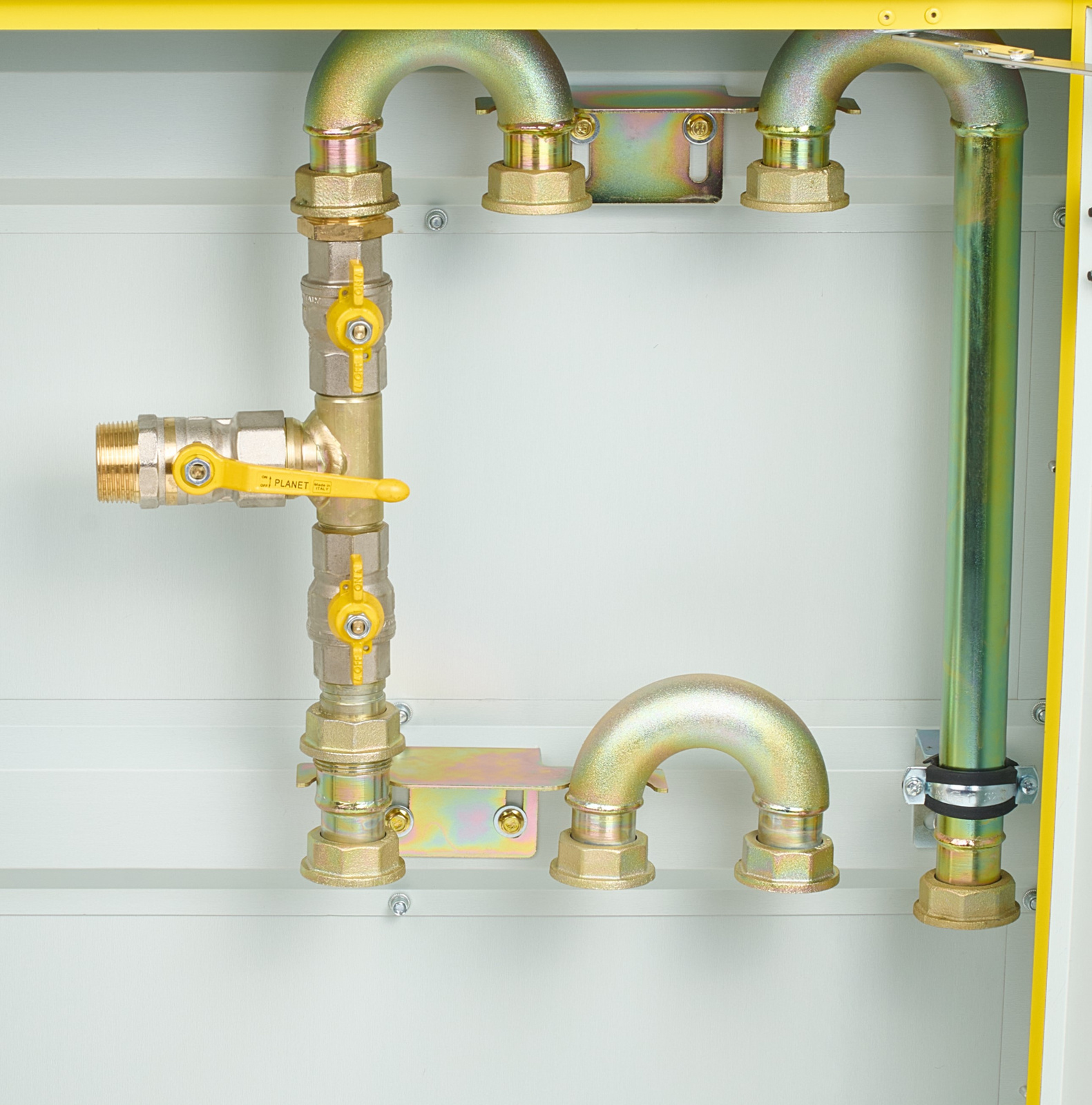 Punkt redukcyjno-pomiarowy na 2 gazomierze G4/G6, w pionie, w skrzynce z laminatu 670x870x250 - popielaty