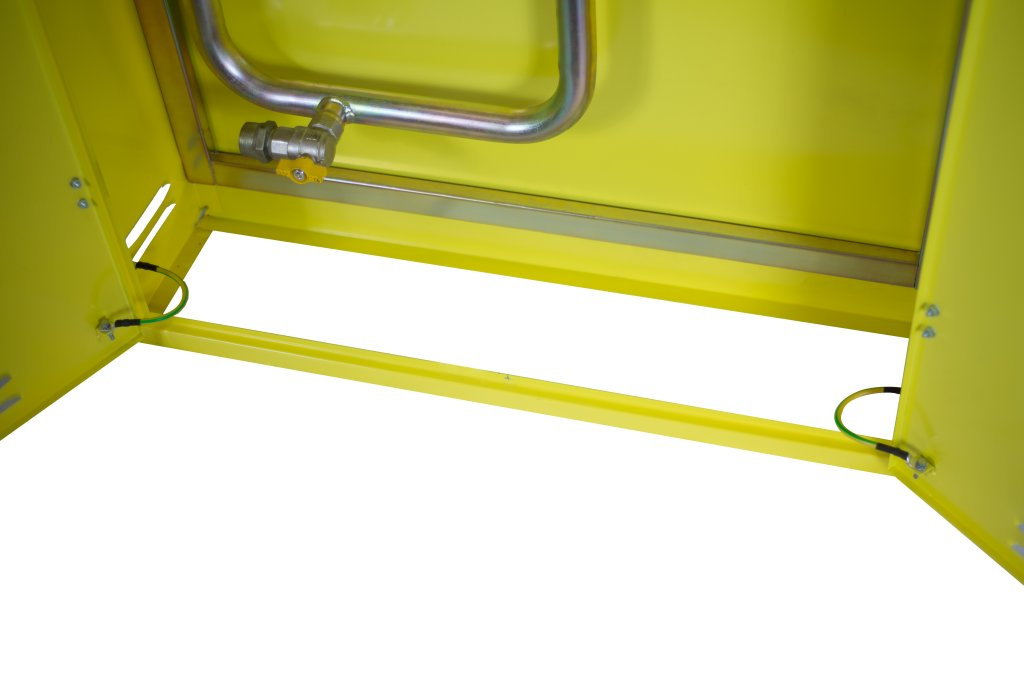 Punkt redukcyjno-pomiarowy na 5-6 gazomierzy G4/G6, w pionie, w skrzynce metalowej - żółty