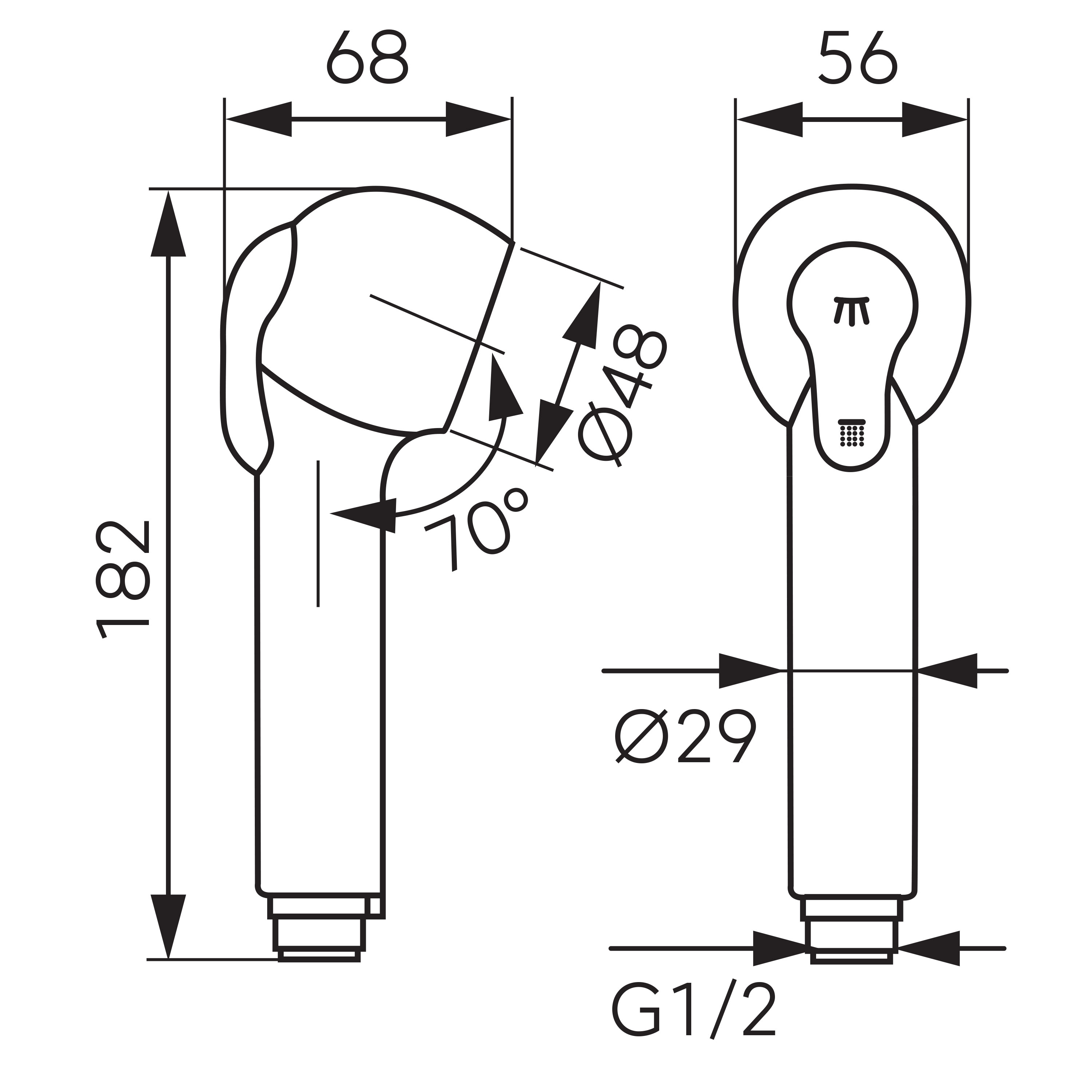 Rączka 2-funkcyjna z przyciskiem zmiany funkcji, który pozwala na przełączanie się między strumieniem natryskowym a standardowym.