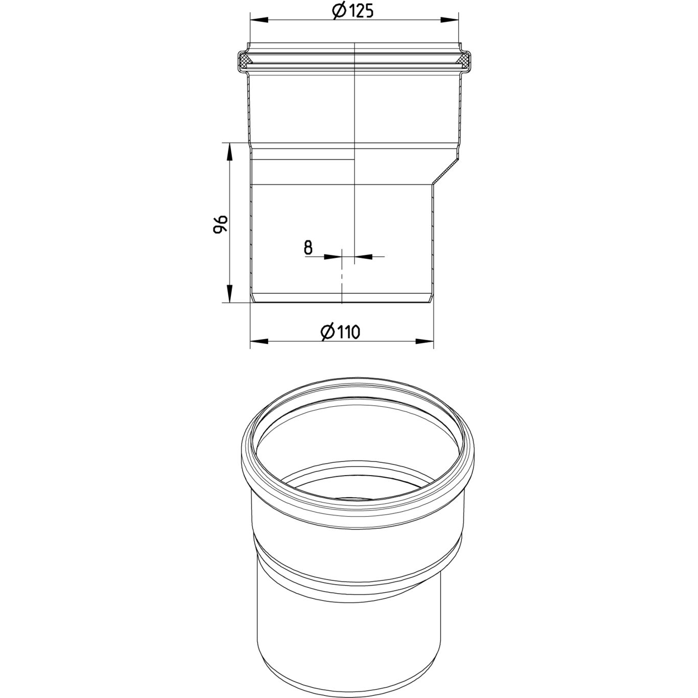 Redukcja zmiana średnic DN =125 kielichx110 mm bosy, stal kwasoodporna