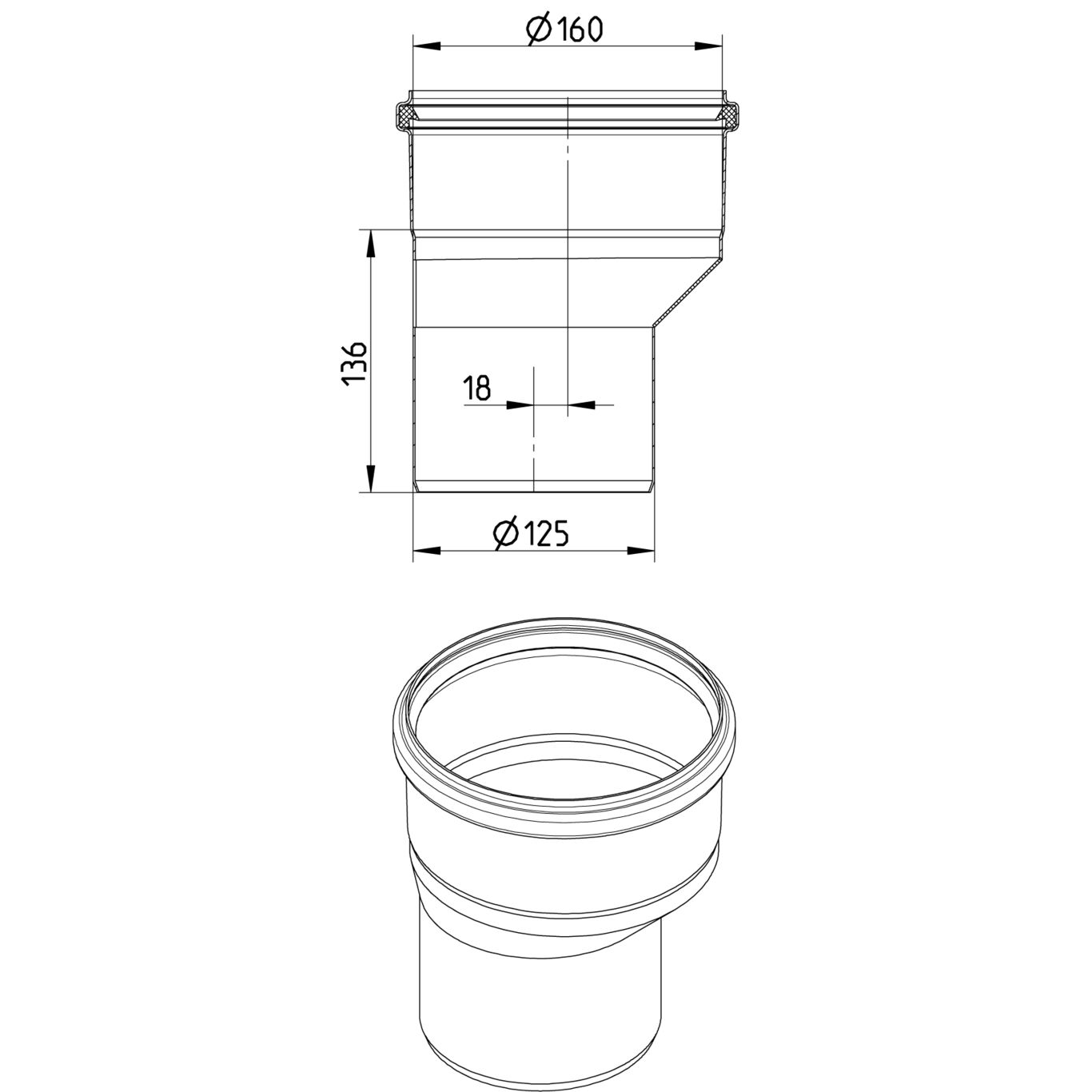 Redukcja zmiana średnic DN =160 kielichx125 mm bosy, stal kwasoodporna