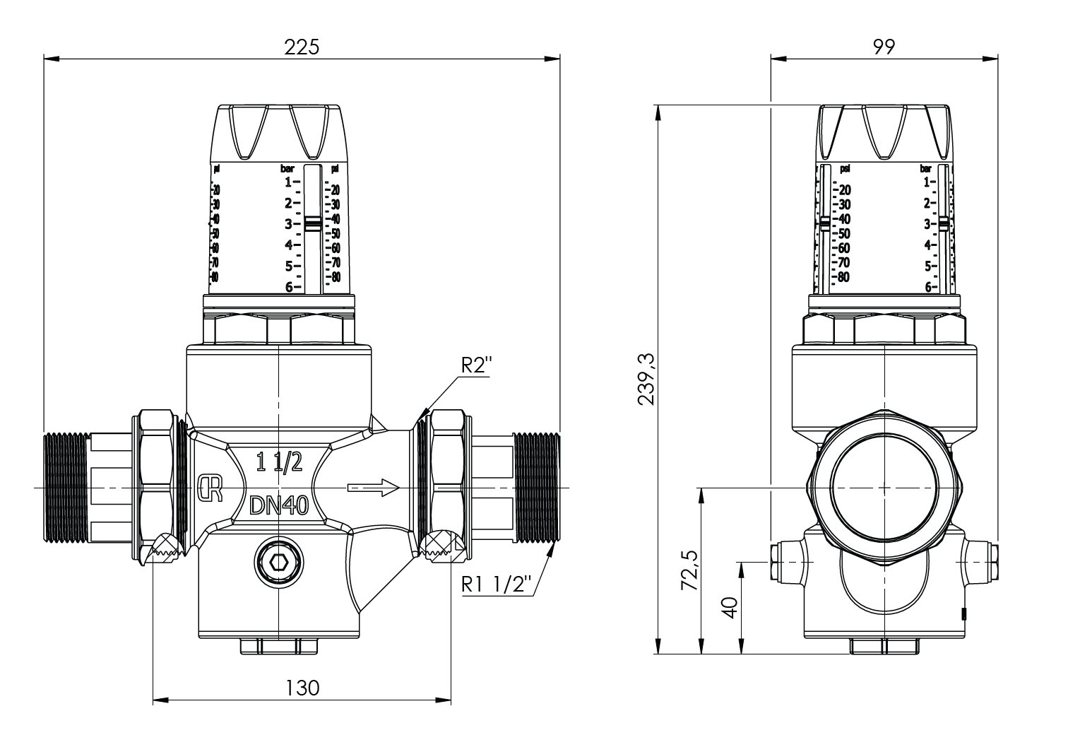 Reduktor ciśnienia wody BPR 425 z siatką filtracyjną, półśrubunki R1 1/2'', 1 ÷ 6 bar