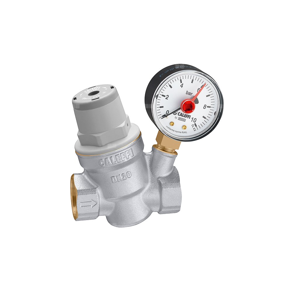 Regulator ciśnienia CALEFFI 5332H mosiądz (niklowanie), GW 1/2'', 16 bar z manometrem, wersja skośna
