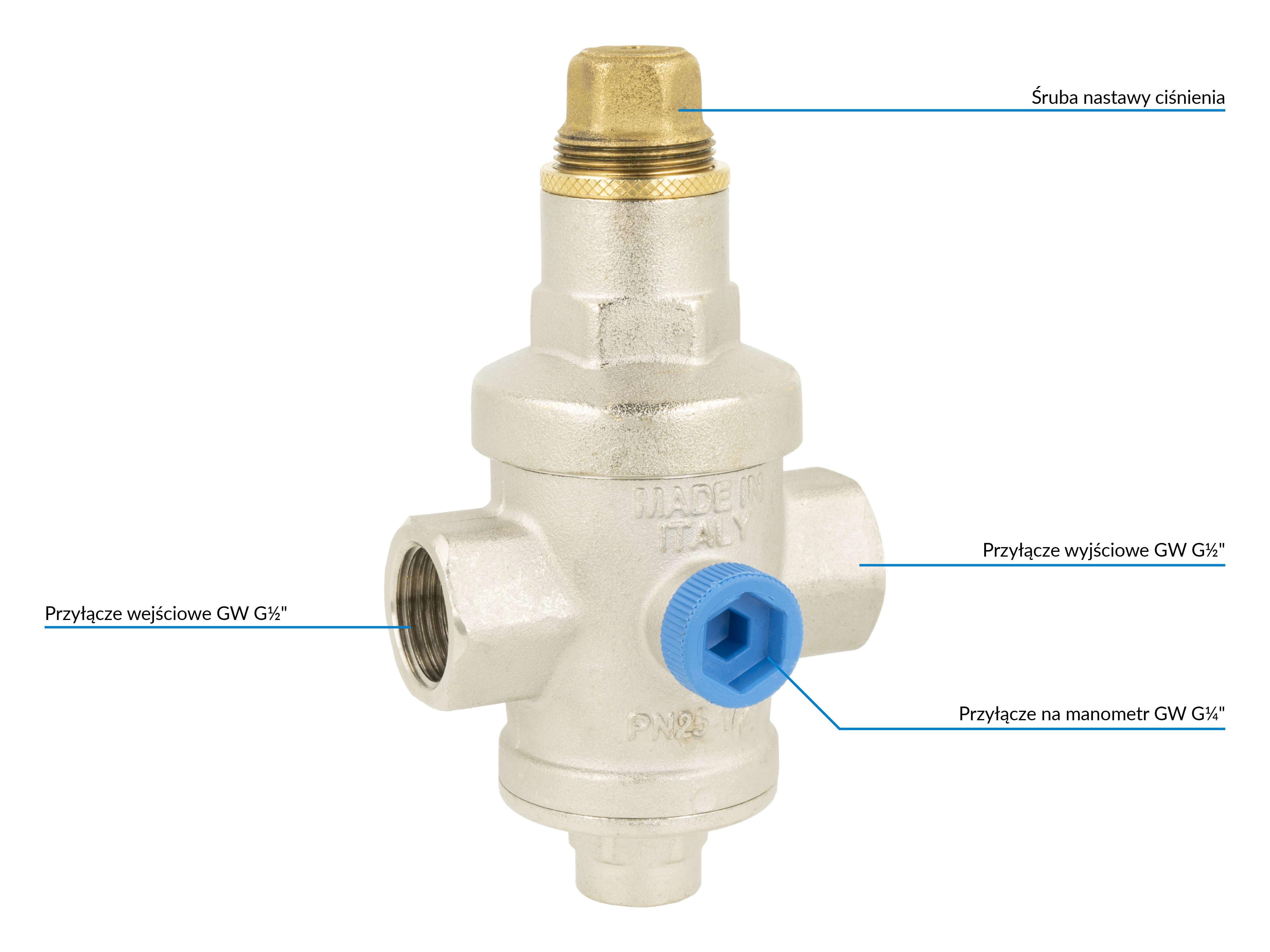 Obniża wysokie ciśnienie wodociągowe do wartości ustalonej.