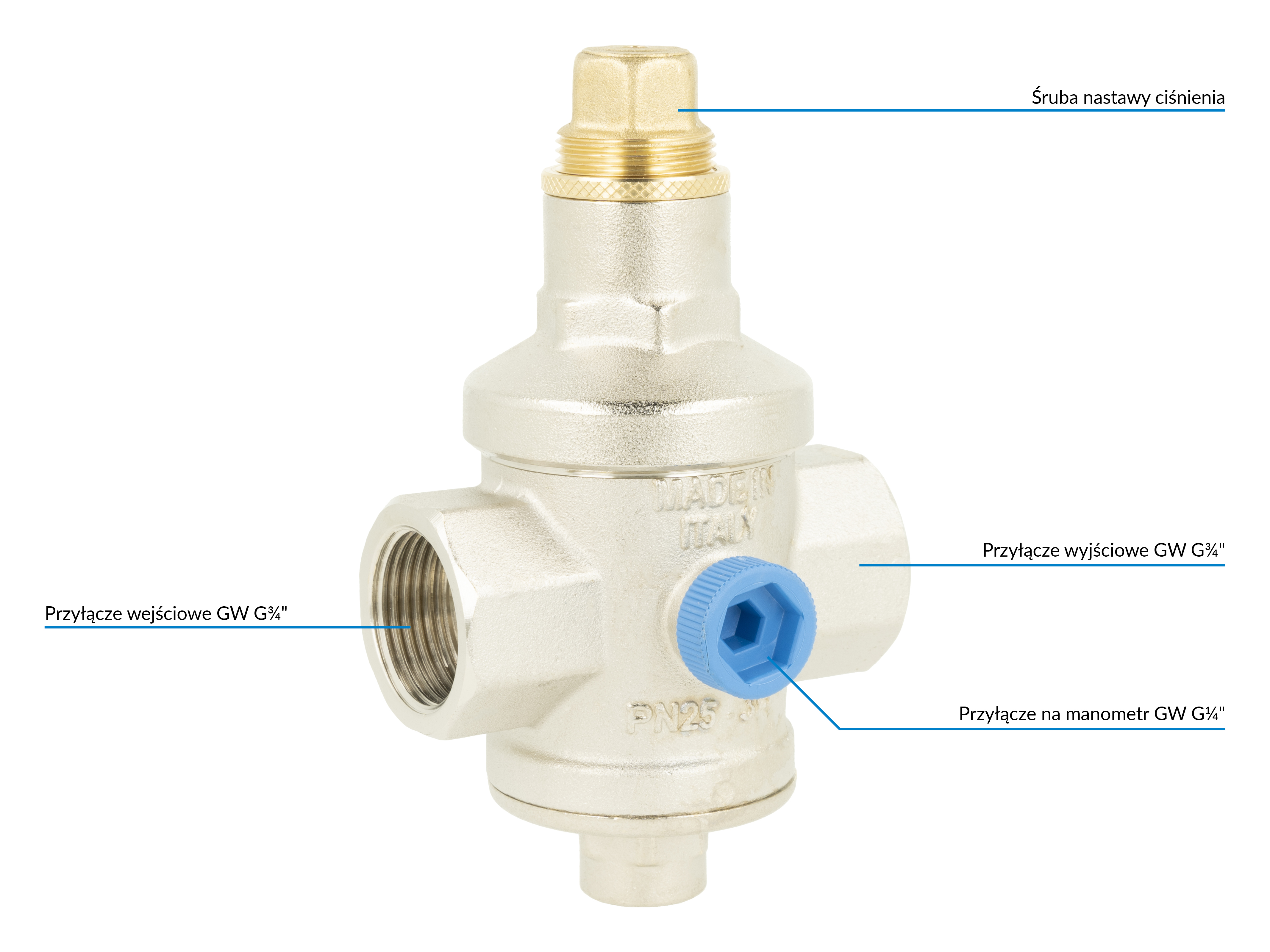Obniża wysokie ciśnienie wodociągowe do wartości ustalonej.