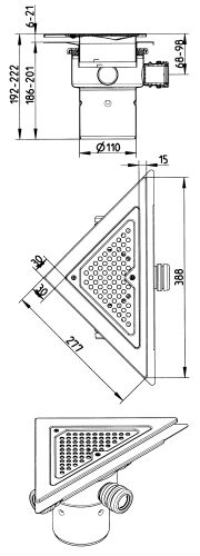 Regulowany wpust TRIO, odpływ pion DN =110 mm, z kołnierzem do izolacji, z bocznymi dopływami