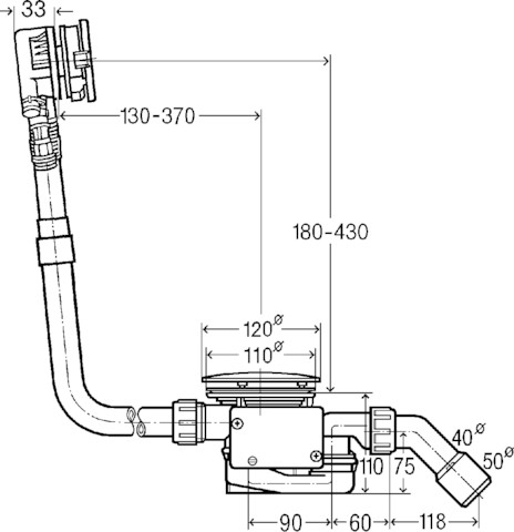 Rotaplex Trio-komplet odpływowo-przelewowy korek do zaworu z napędem, nr wzoru 6175.2 DN: 40/50 wanna z odpływem pośrodku do wanien z otworem odpływowym fi 90