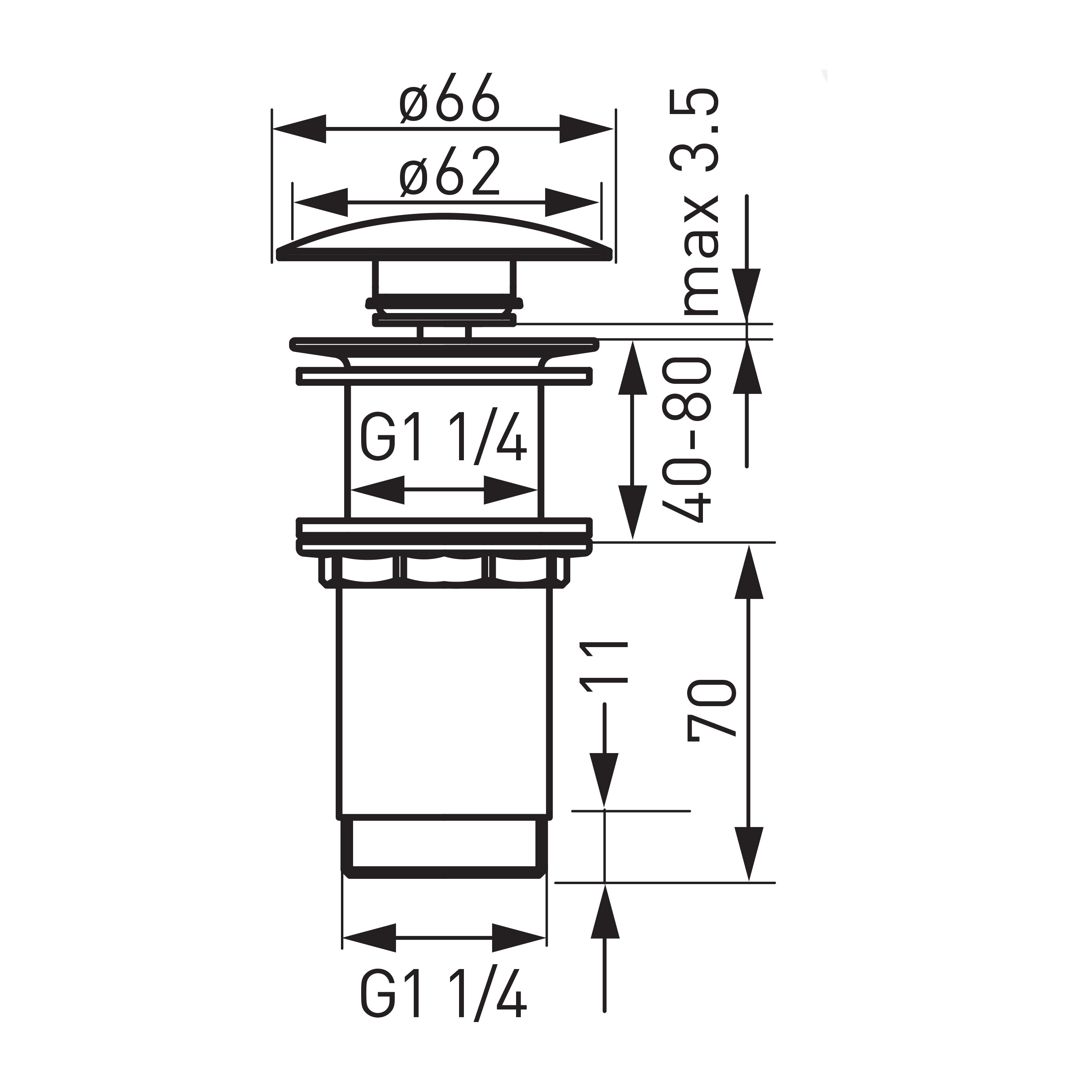 Wysoki, chromowany korek przeznaczony do umywalek blatowych, bez przelewu.
