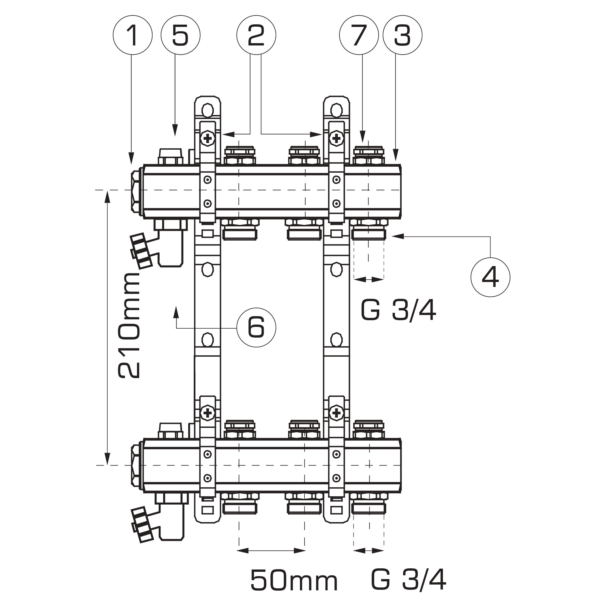 Rozdzielacz 5-drogowy z zaworami odcinającymi obwody, standard