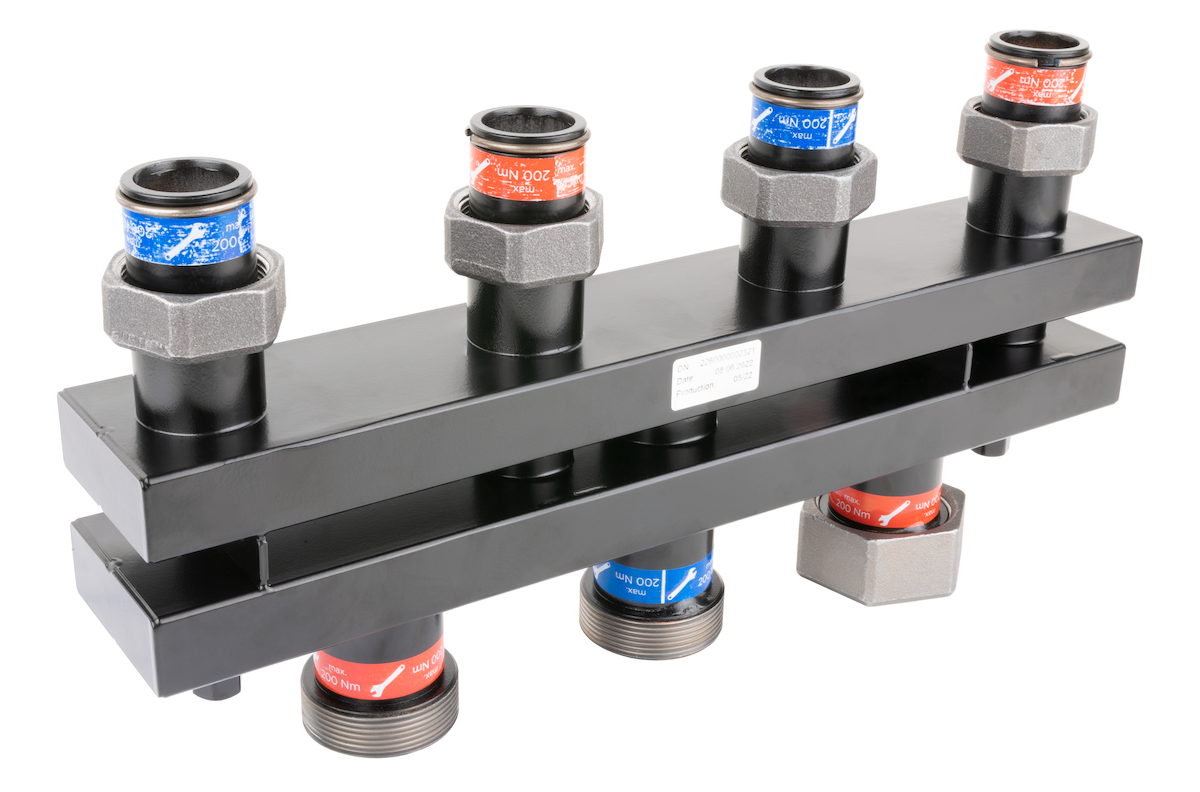 Przeznaczony do szybkiego i wygodnego podłączenia dwóch grup pompowych PrimoTherm do źródła ciepła/chłodu.