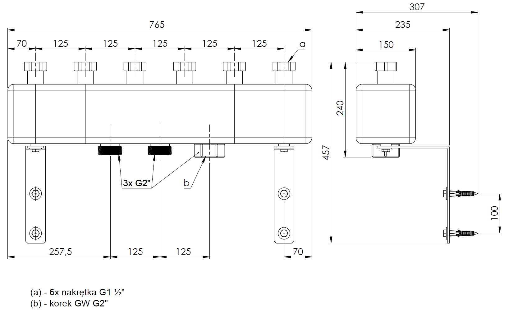 Rozdzielacz do instalacji c.o. AFRISO KSV 125-3 GZ 2'', 3-obieg. Nakrętka 1 1/2'', max. 160 kW