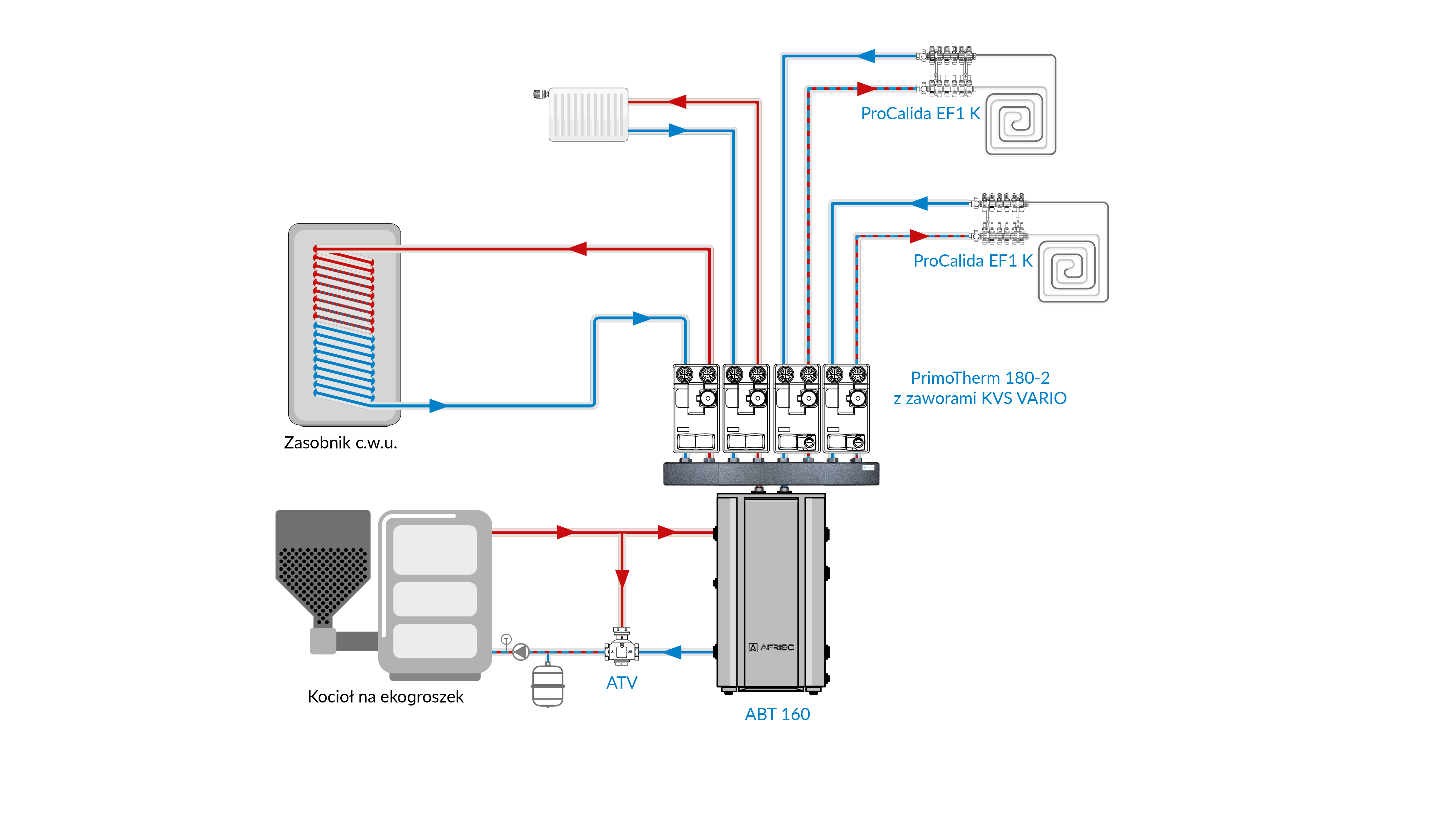 Przeznaczony do szybkiego i wygodnego podłączenia czterech grup pompowych PrimoTherm do źródła ciepła.