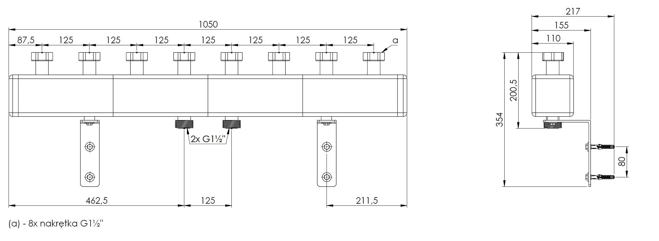 Rozdzielacz do instalacji c.o. AFRISO KSV 125-4 GZ 1 1/2'', 4-obieg. Nakrętka 1 1/2'', max. 70 kW
