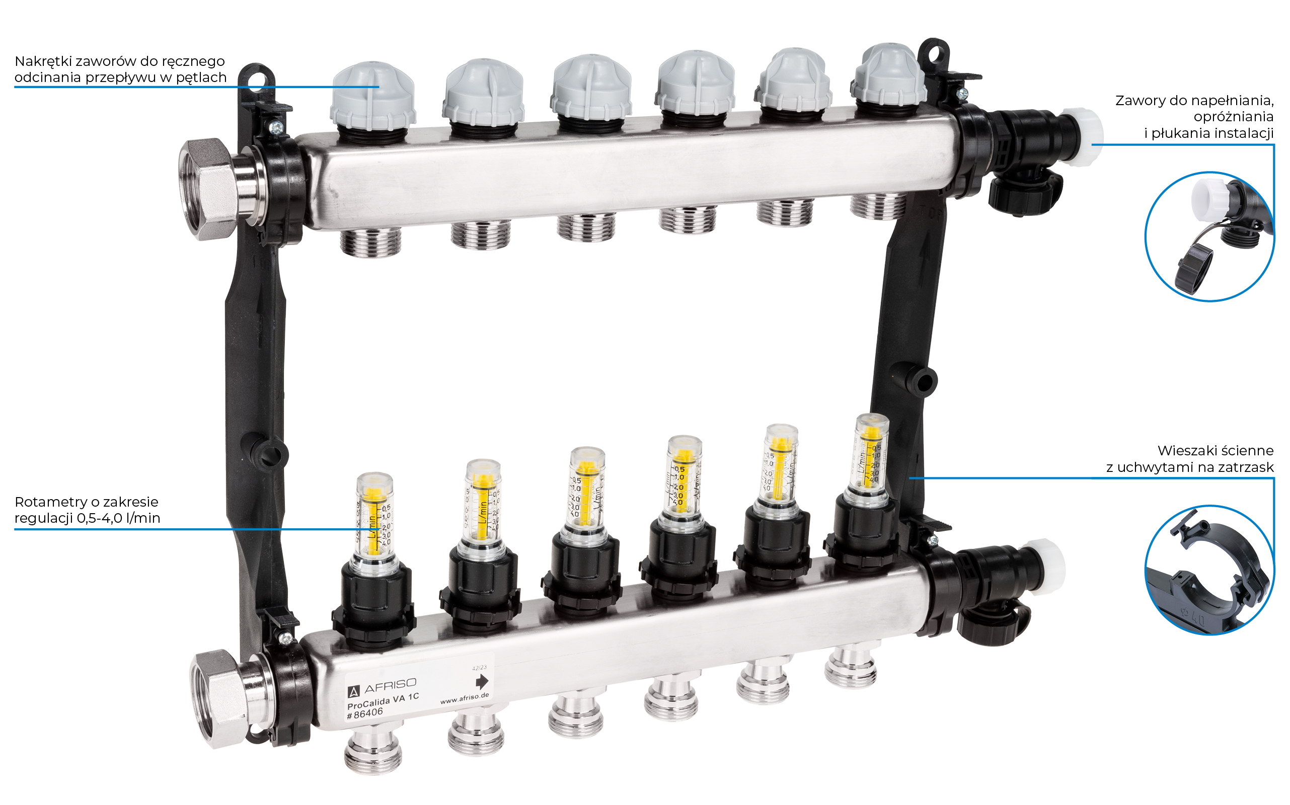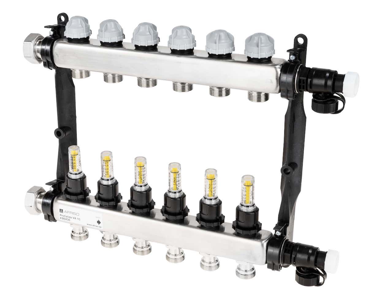 Rozdzielacz do ogrzewania podłogowego AFRISO ProCalida VA 1C 6-obieg. stal nierdzewna GZ 1'' x euroconus 3/4''