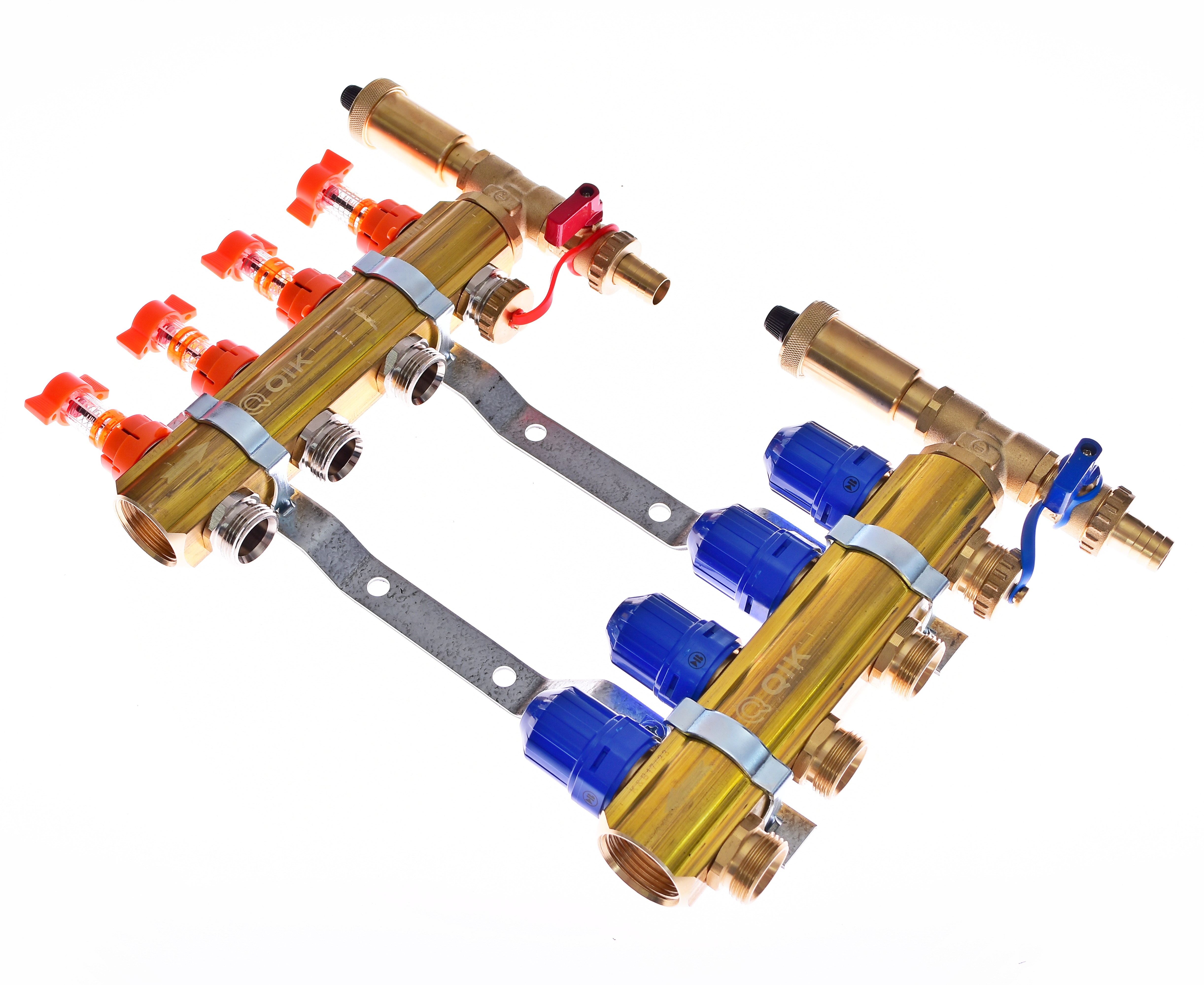 Rozdzielacz do ogrzewania podłogowego QIK Optimo STANDARD III - RMSZT-1-50 2-obieg. mosiądz GW 1'' x GZ 3/4'' + przepływomierz