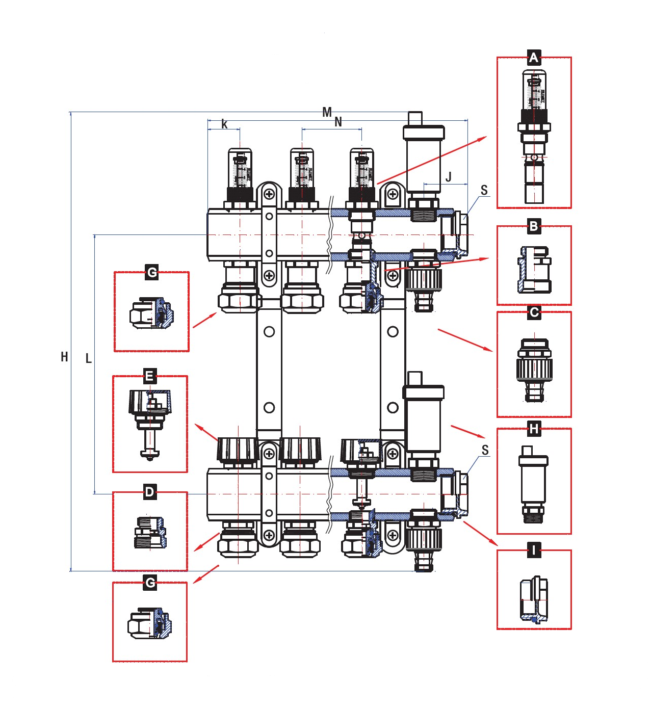 Rozdzielacz ogrzewania RUMET 71E 9 obwodowy