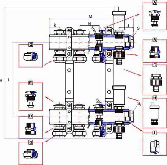 Rozdzielacze podłogowego ogrzewania przeznaczone są do rozdzielenia medium grzewczego na poszczególne pętle grzewcze.