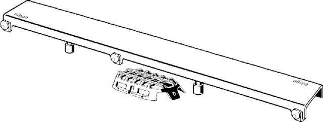 Advantix-odpływ liniowy - ruszt, Visign ER10, kontur prostokątny. Przeznaczenie: wysokość okładziny od 6–15 mm (płytka + klej), stal nierdzewna 1.4301, z regulacją wysokości. Wyposażenie: Zestaw regulowanych nóżek, sitko, nr wzoru 4982.51, nr kat. 737 207, L: 750 wykonanie: błyszczący