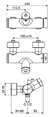 Samozamykająca armatura natryskowa VITUS vD-SC-T/u naścienna z termostatem