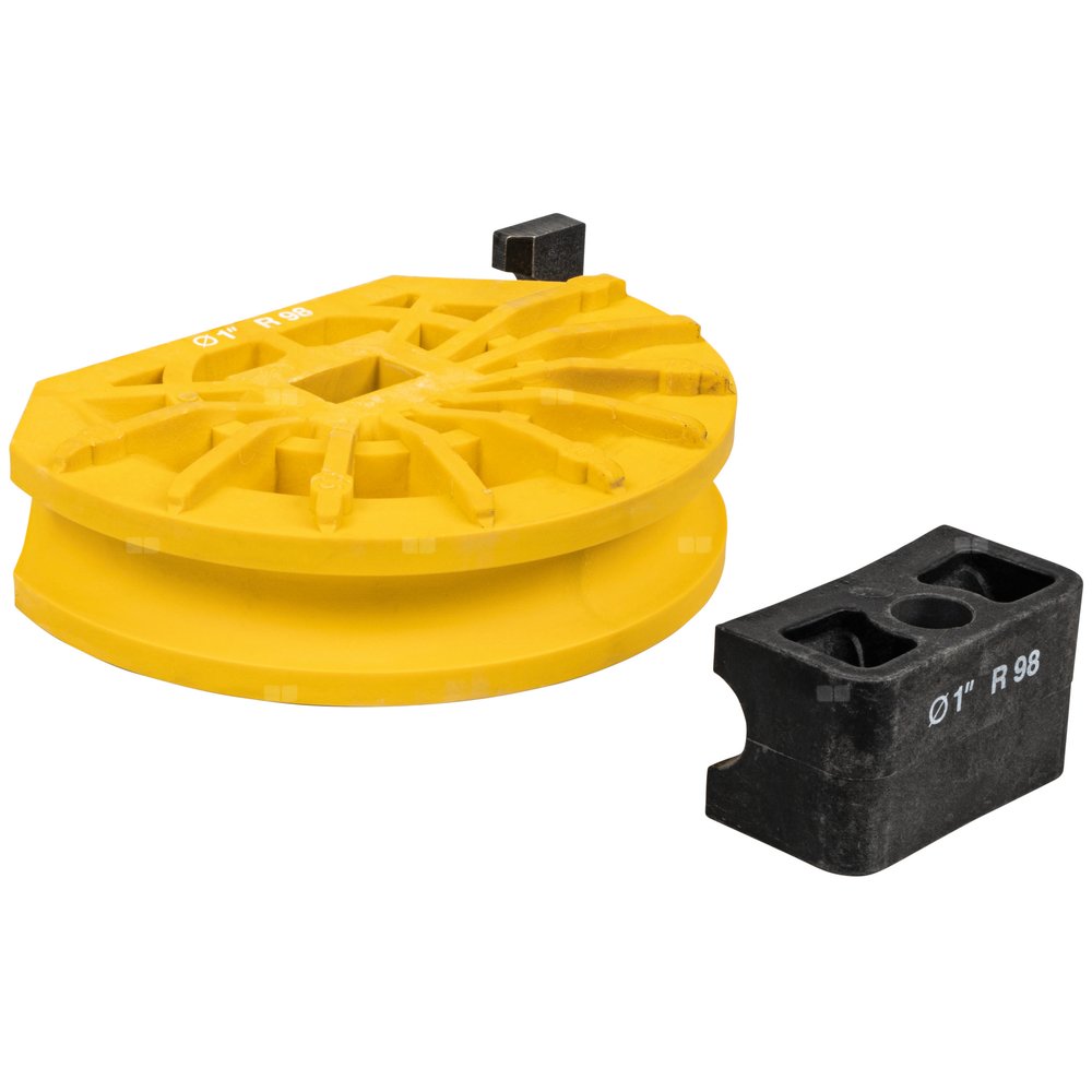 Segmenty gnące i ślizgi 180°, odporne na zniekształcenia i nacisk, z wysoko wytrzymałego, o wysokich własnościach ślizgowych, wzmocnionego włóknem szklanym poliamidu lub aluminium lub segmenty gnące 90° (Ø 21,3 R 103, Ø 26,9 R 102, Ø 33,7 R 100, Ø 35 R100, Ø 42 R140, Ø 42,4 R 140, Ø 50 R135, Ø 1" R100, Ø 1¼" R140) dla REMS Curvo 50 z żeliwa sferoidalnego. Optymalne dopasowanie segmentu gięcia i elementu ślizgowego zapewnia gięcie określonego materiału bez pęknięć i fałd. Skala stopniowa 0 do 180° na każdym segmencie gnącym i znak na każdym elemencie dociskowym gwarantuje precyzyjne gięcie. Szybka wymiana segmentu gnącego i elementu dociskowego.