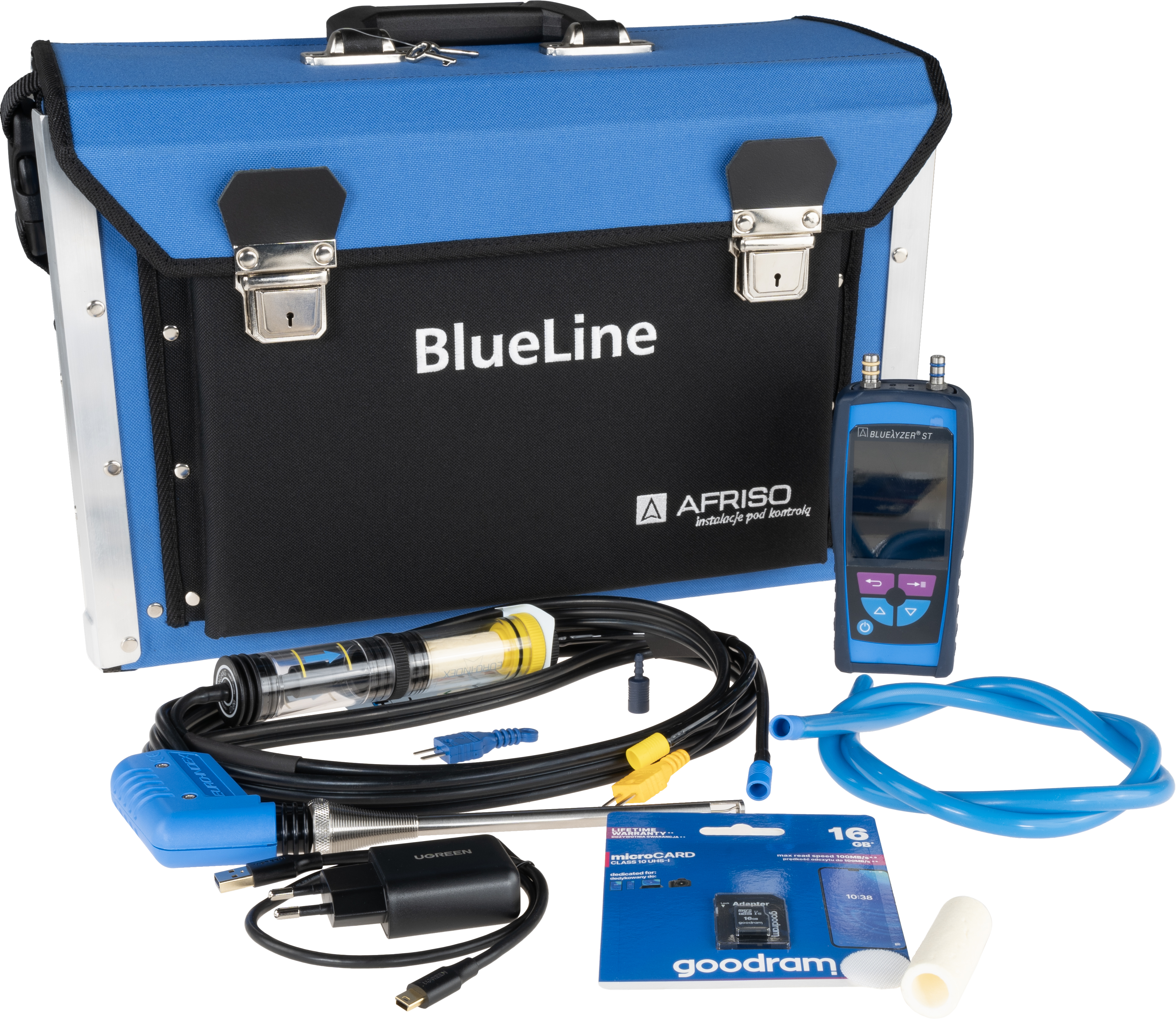 Sensor O2, CO, pomiar ciągu kominowego AFRISO Bluelyzer ST pro, bez drukarki, z walizką