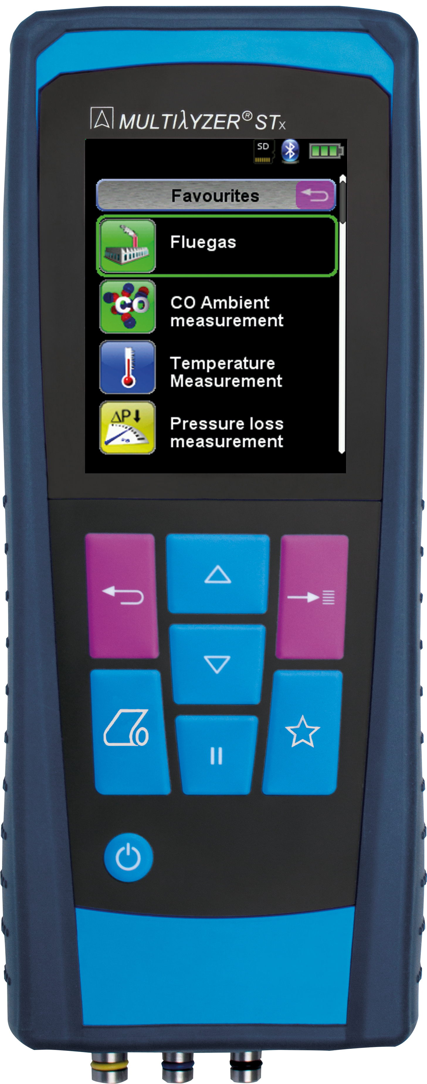 Sensor O2, CO/H2, NO, CO+, pomiar ciągu kominowego AFRISO Multilyzer STx wyświetlacz kolorowy TFT 2,8'', akumulator Li-Ion, z drukarką, z walizką