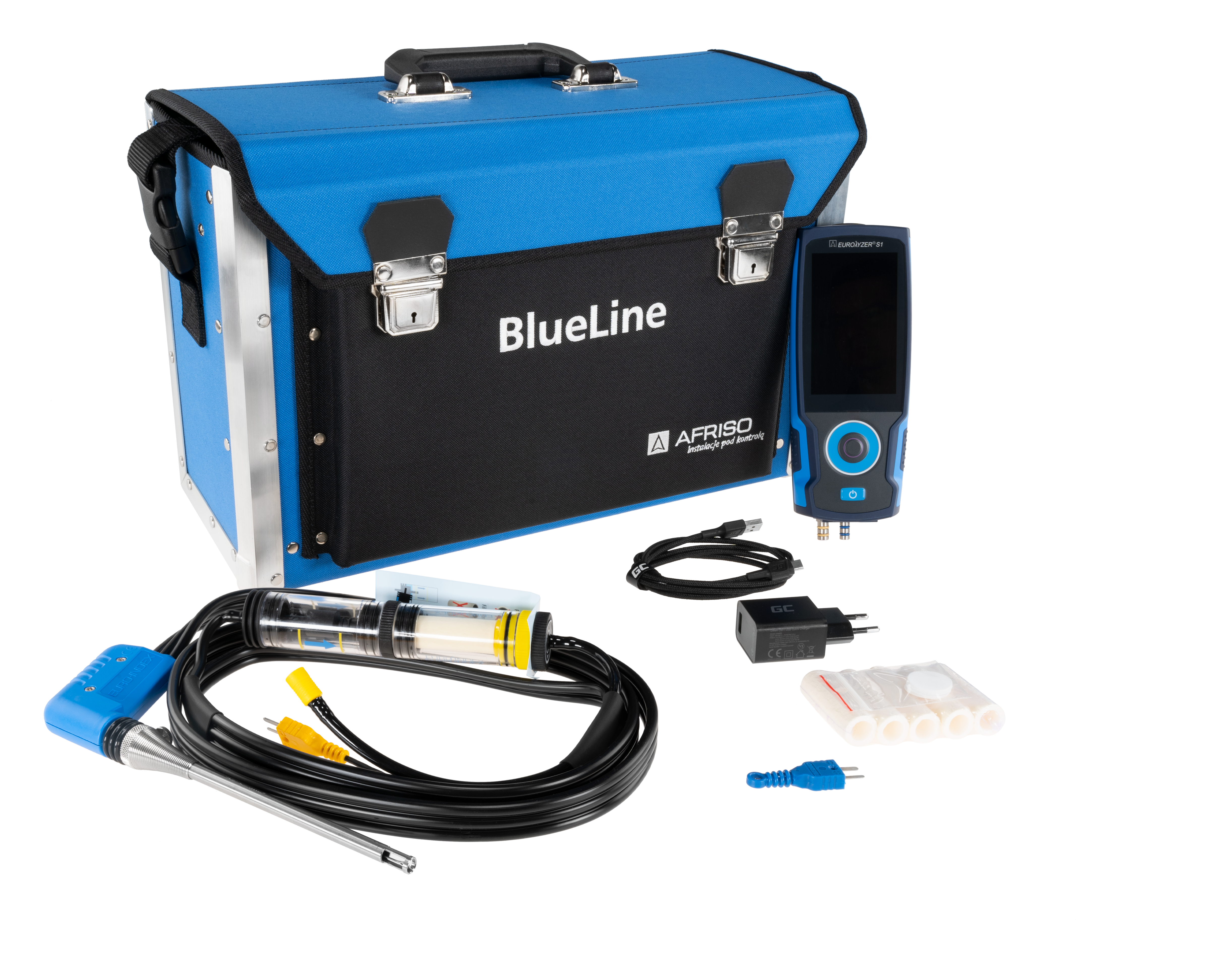 Sensor O2, CO/H2, pomiar ciągu kominowego, analizator spalin AFRISO EUROLYZER S1 standard, bez drukarki, z walizką