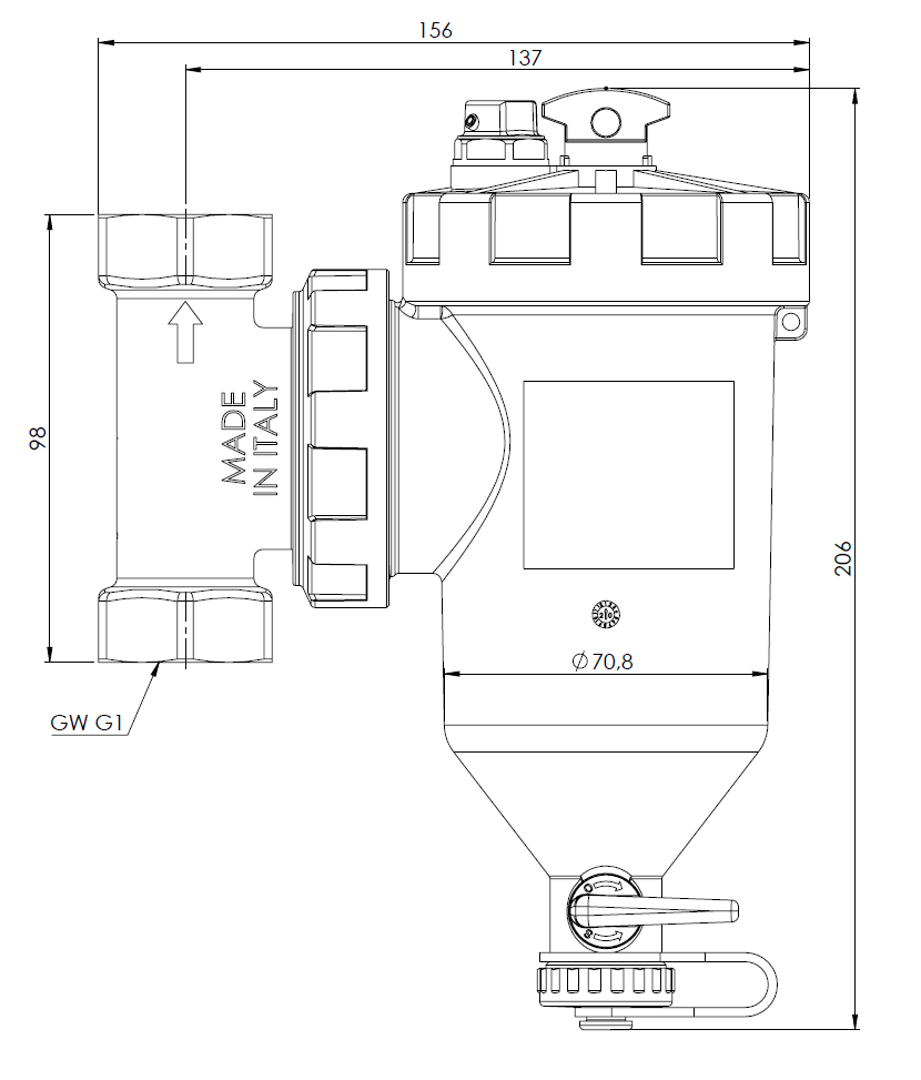 Zawór spustowy ułatwia usuwanie zanieczyszczeń.
