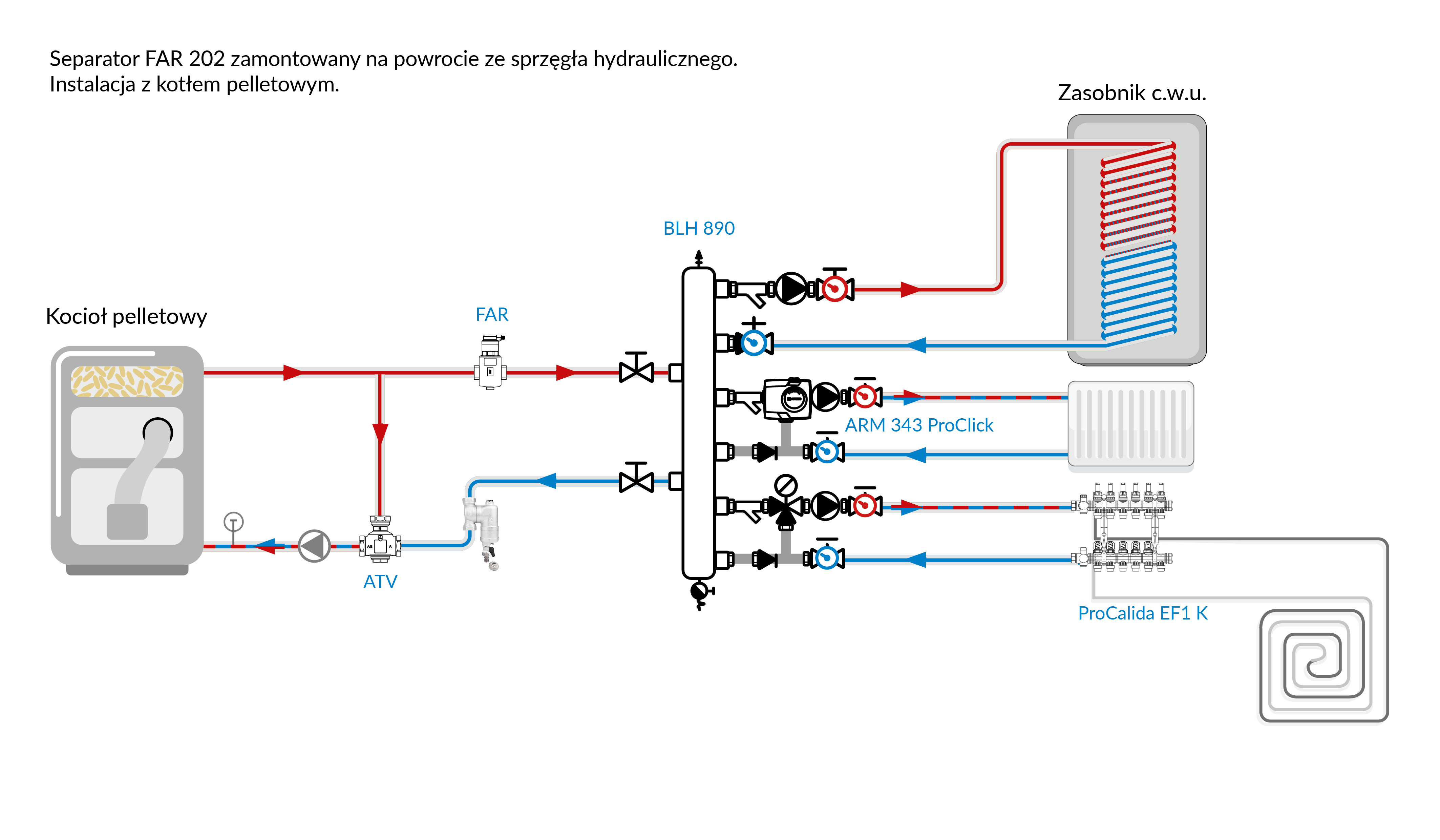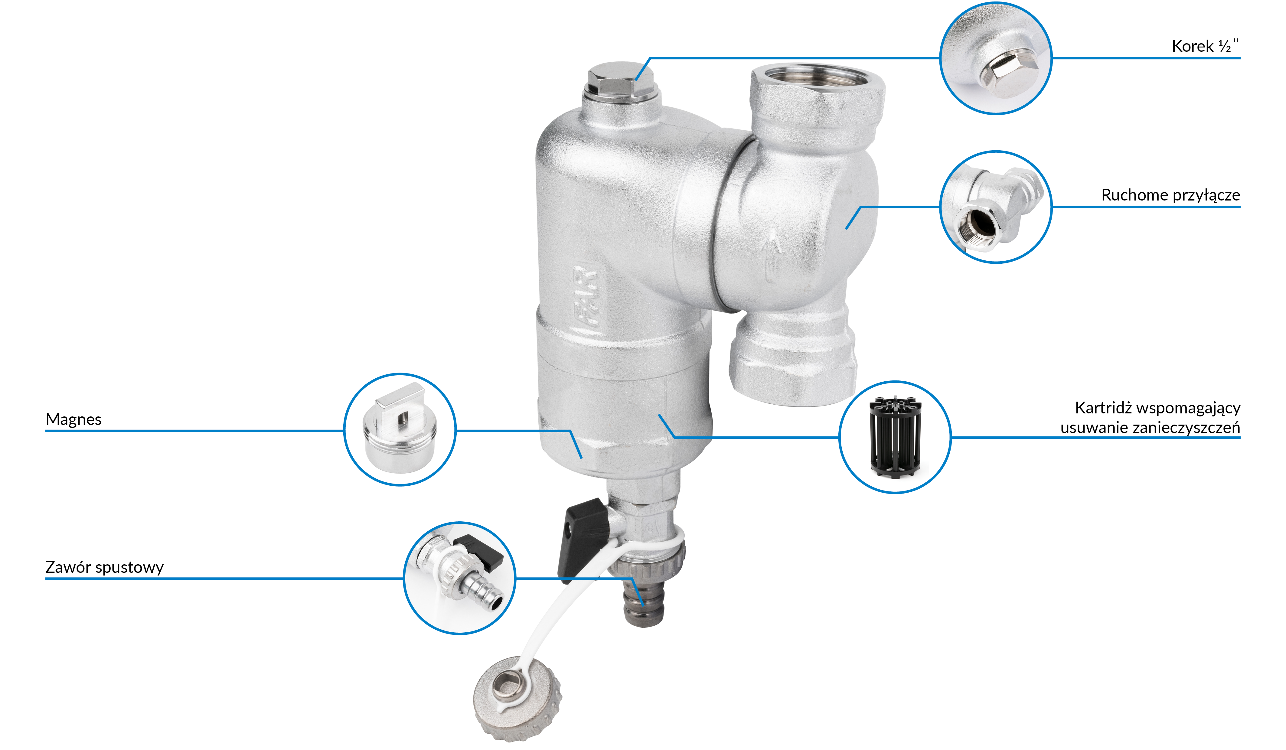Stosowany w instalacjach grzewczych i chłodzących.Montowany na powrocie z instalacji przed źródłem.