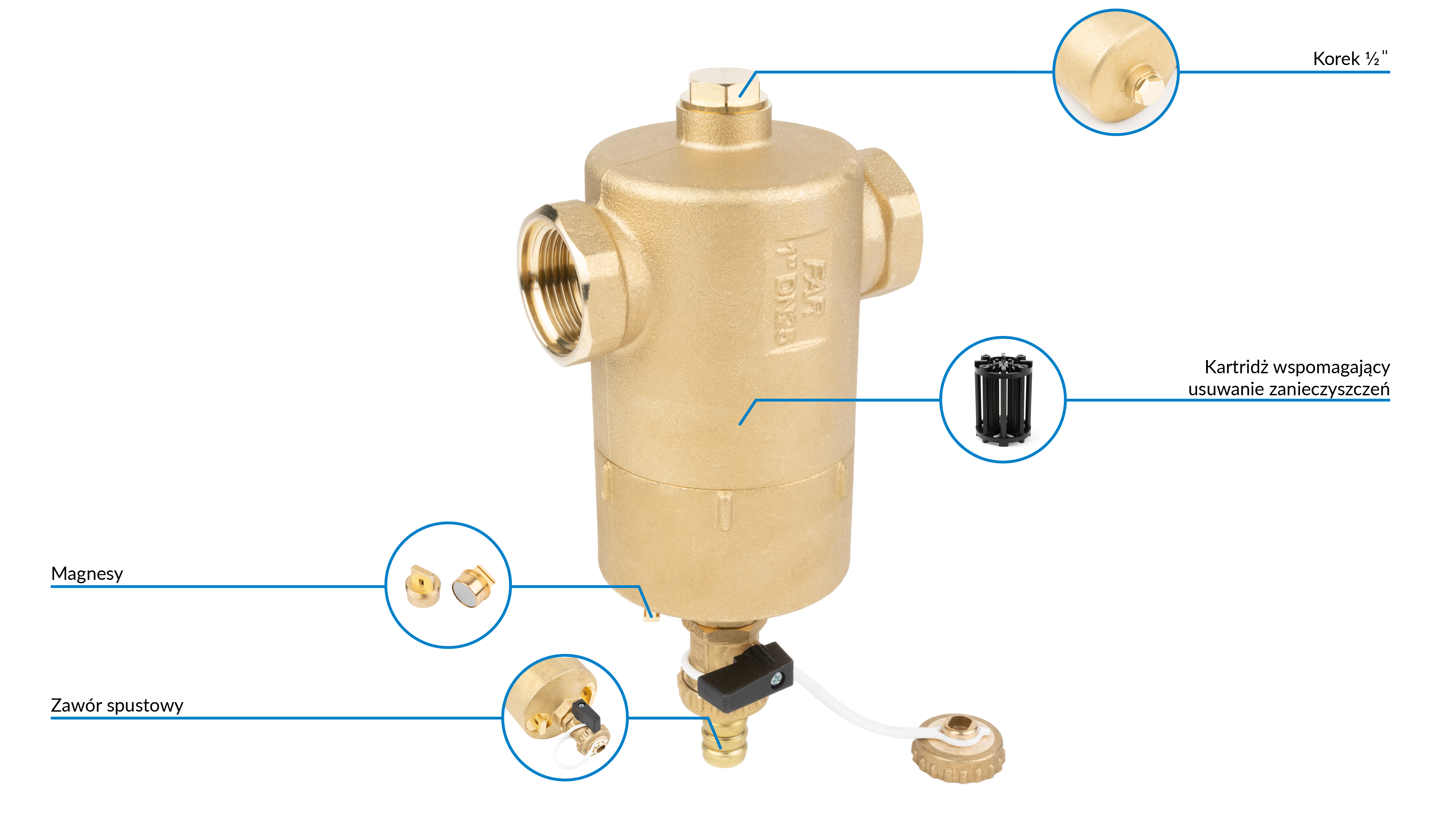 Stosowany w instalacjach grzewczych i chłodzących.Montowany na powrocie z instalacji przed źródłem.