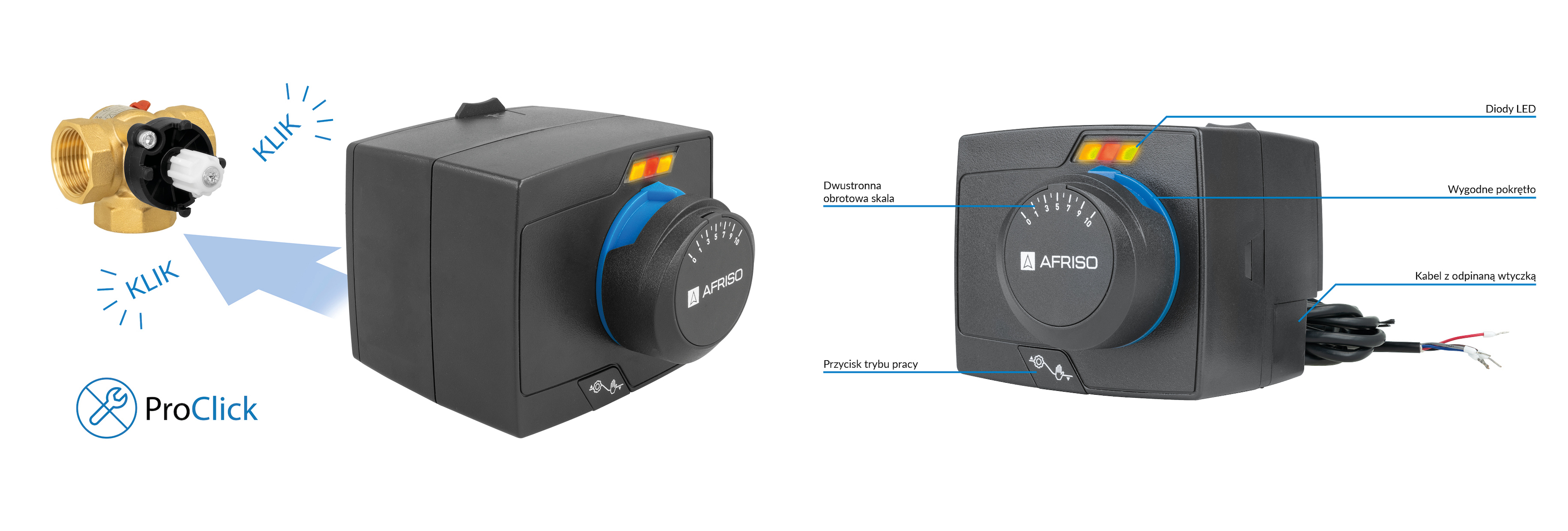 Stosowany w instalacjach grzewczych i chłodzących.Montowany na 3 i 4-drogowych obrotowych zaworach mieszających.