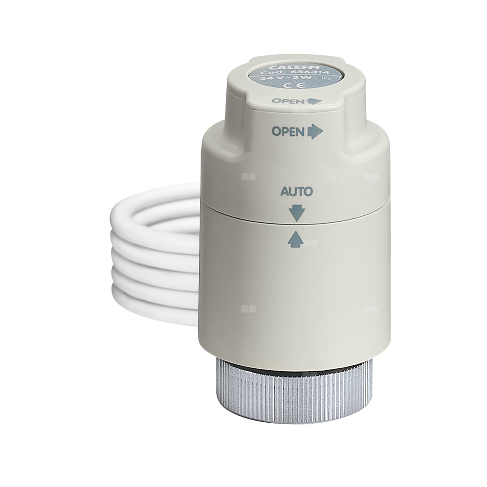 Siłownik termoelektryczny z ręcznym otwarciem i wskaźnikiem pozycji otwarcia Normalnie zamknięty. Dla zaworów z serii 338, 339, 401, 402, 425, 426, 421, 422, 230, 231, 232, 233, 234, 237, 220, 221, 222, 223, 224, 225, 226, 227, 455 i 456. Zakres temperatury otoczenia: 0–50 °C. Zasilanie elektryczne: 230 V (AC). Pobór mocy: 3 W. Stopień ochrony: IP 40. Długość przewodu zasilająego: 0,80 m. Prąd rozruchowy: ≤ 1 A.